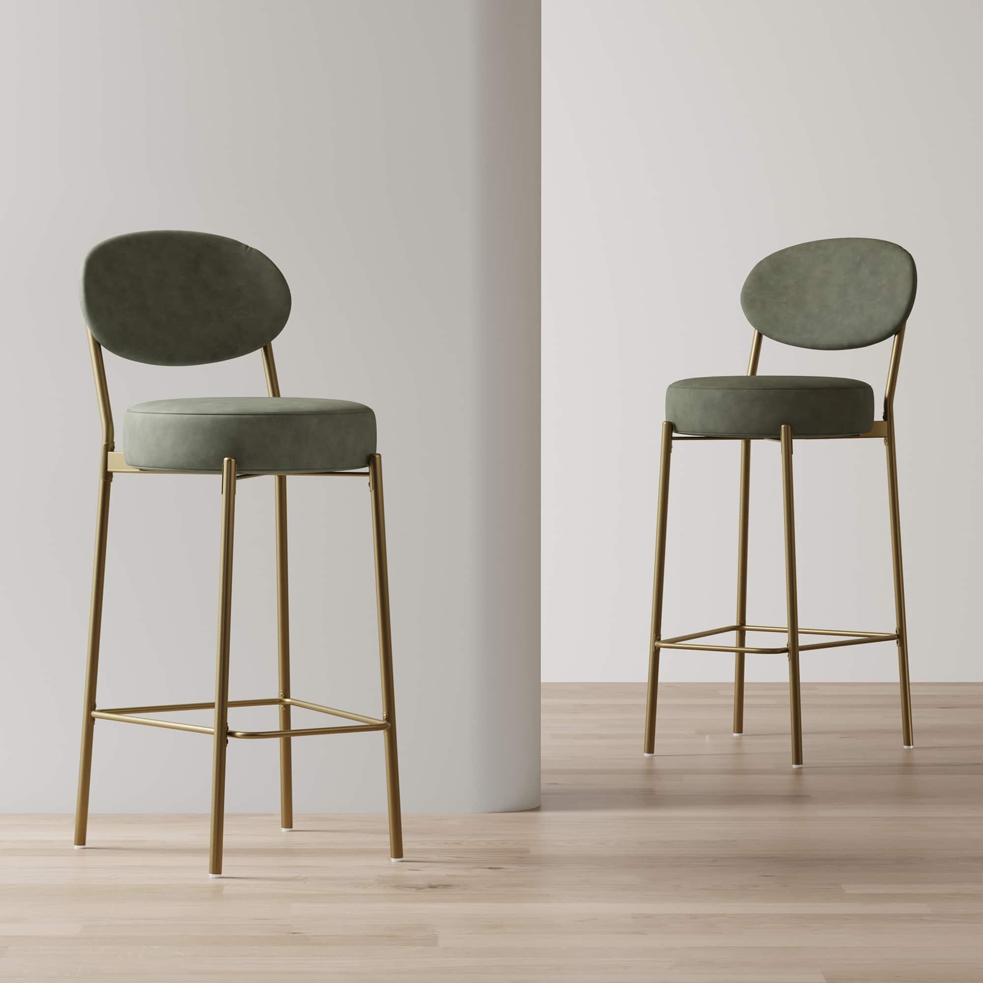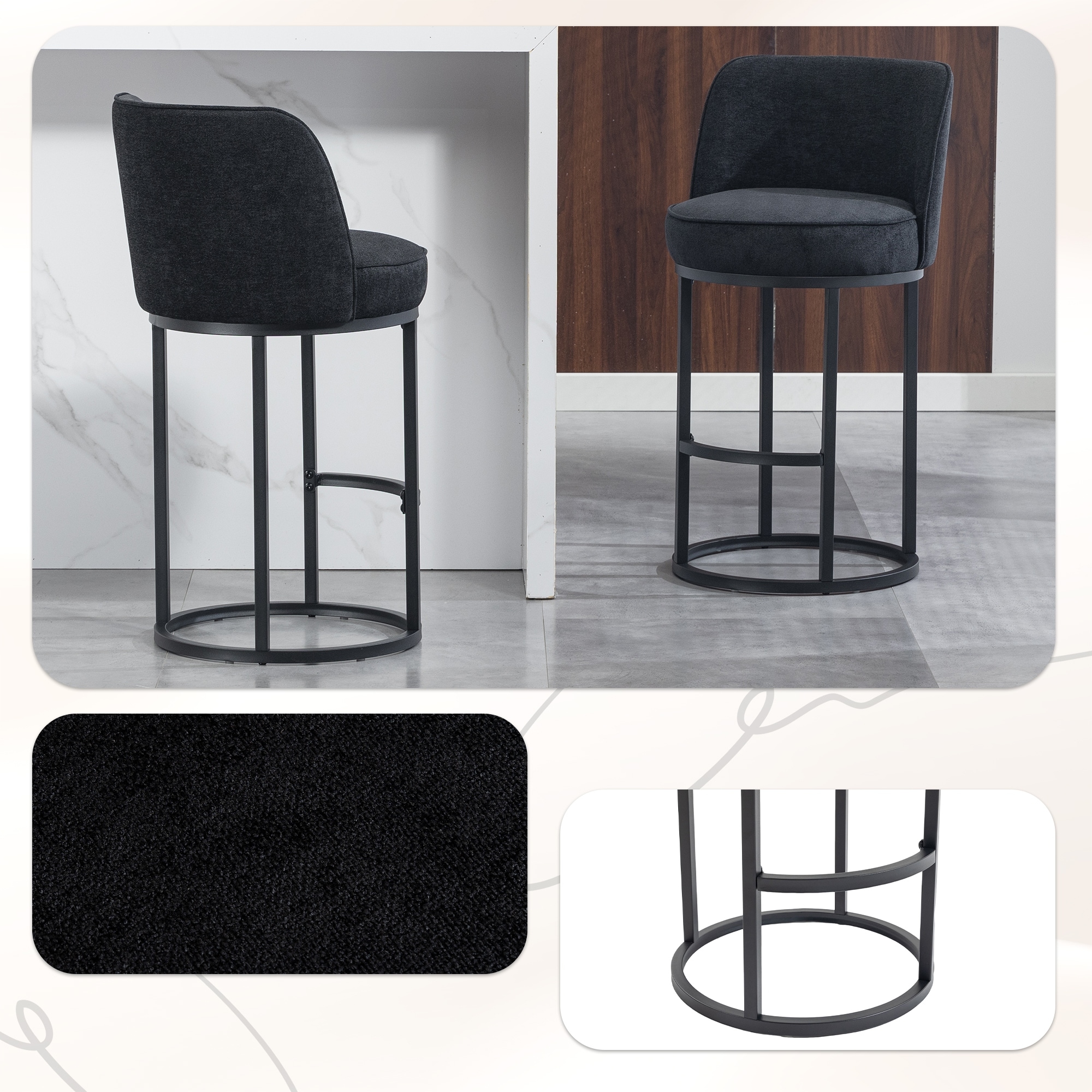 Simple Velvet Bar Chairs Set of 2, with Powder-coated Black Iron Feet