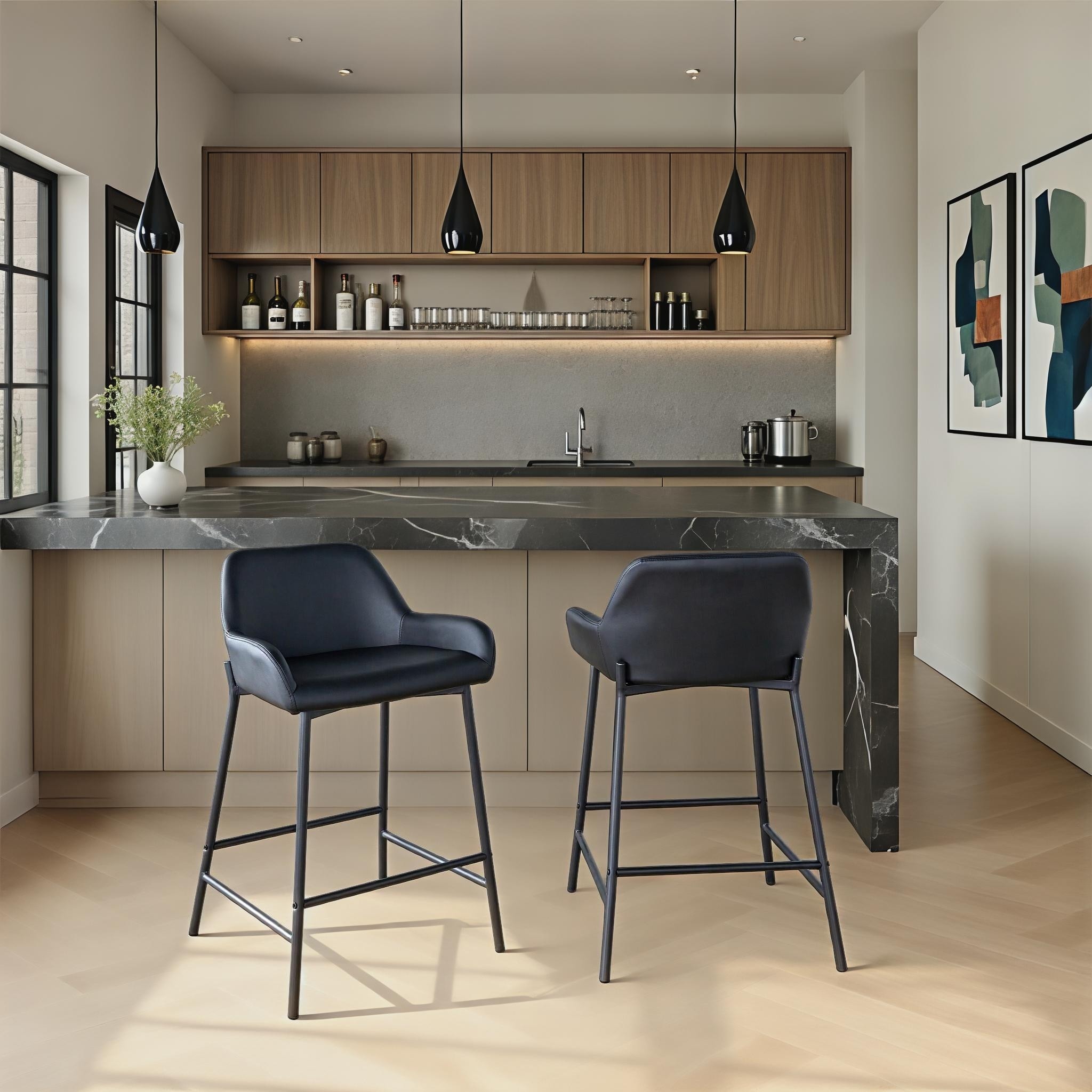 Carbon Loft Galotti Black Fixed-Height Upholstered Bar Stool - Set of 2