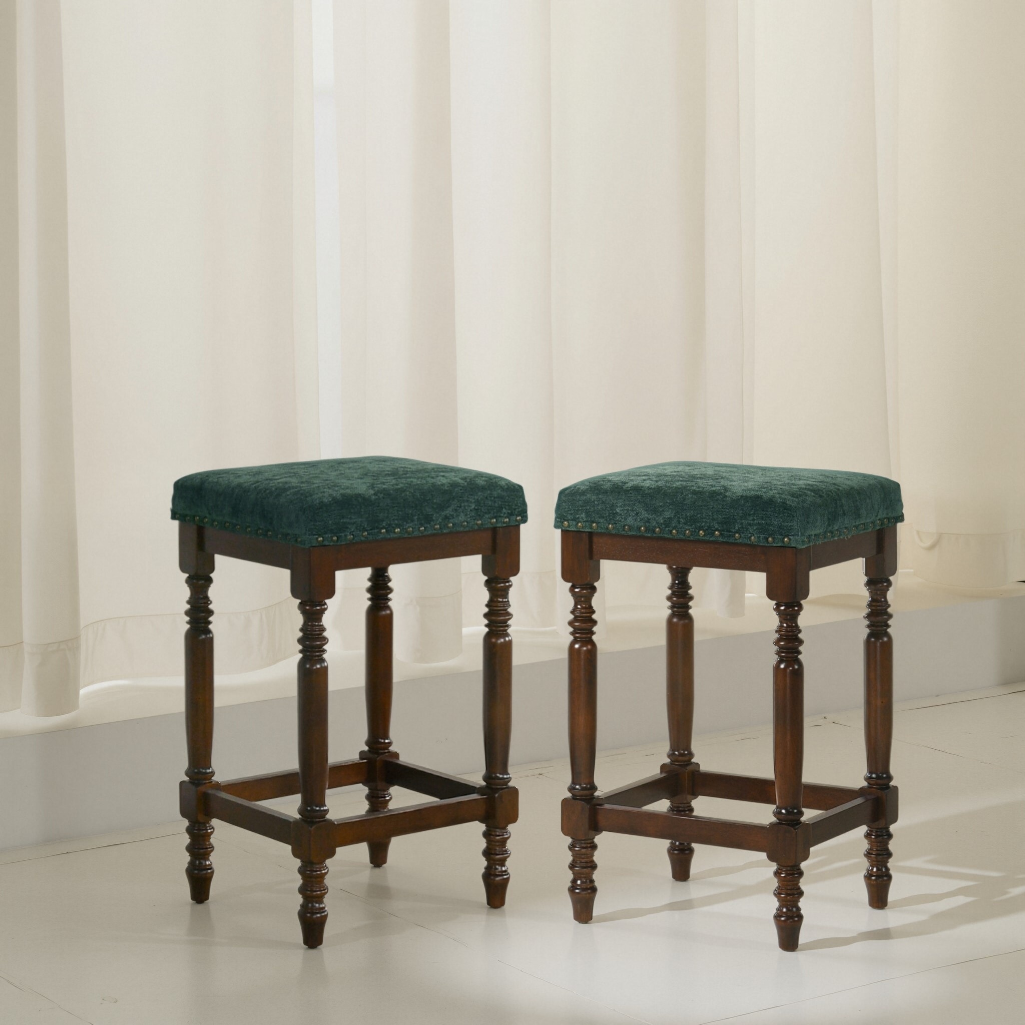 Carson Carrington Alba 24" Fixed-Height Upholstered Counter Stool with Bent Wood Legs & Round Footrest (Set of 2)
