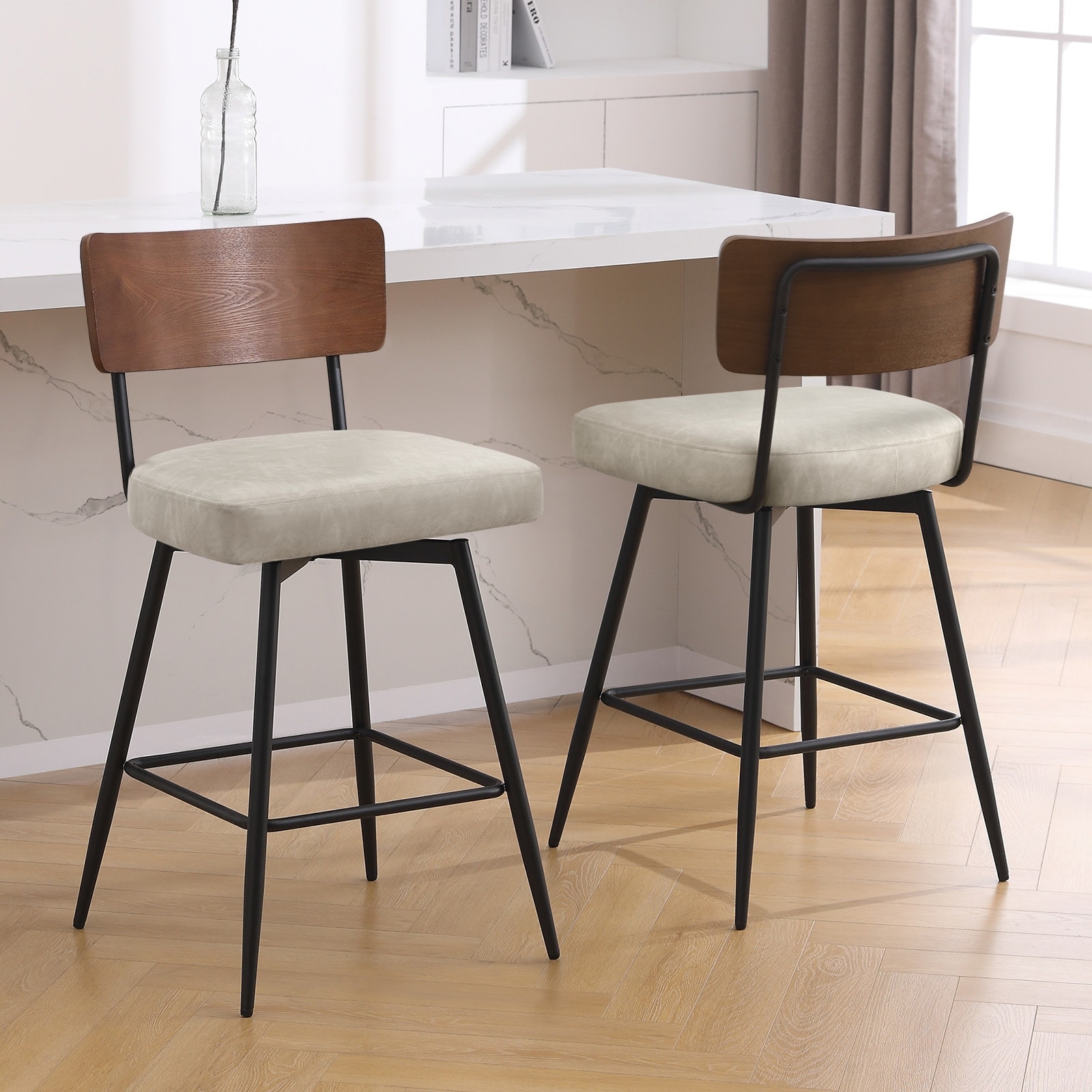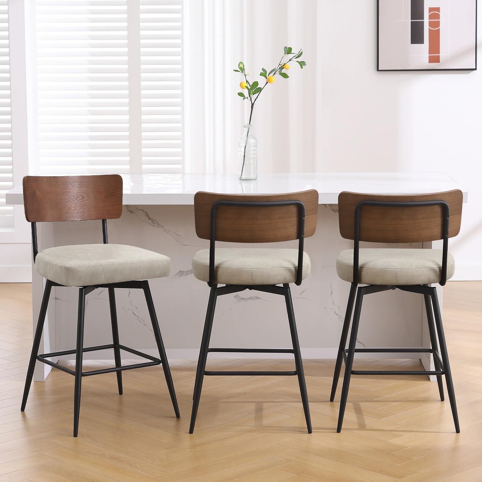 Gymax 26'' Counter Height Swivel Bar Stools Set of 4 w/Back & Faux