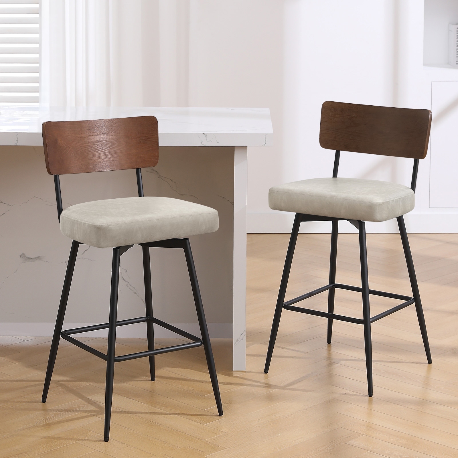 26"/30" Swivel Bar Stool Set of 2 Counter/Bar Height Wood Frame Beige