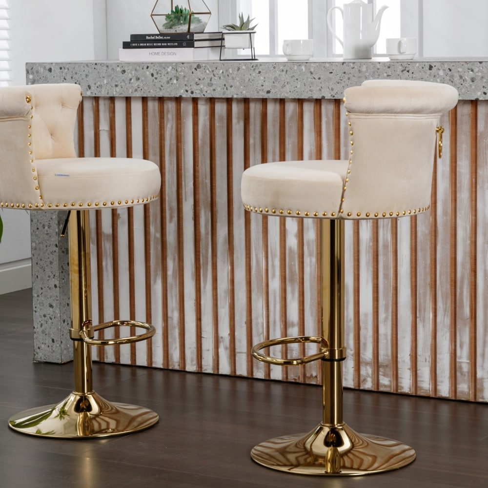Wing Back Velvet Tufted Nailhead Barstools(Set of 6)