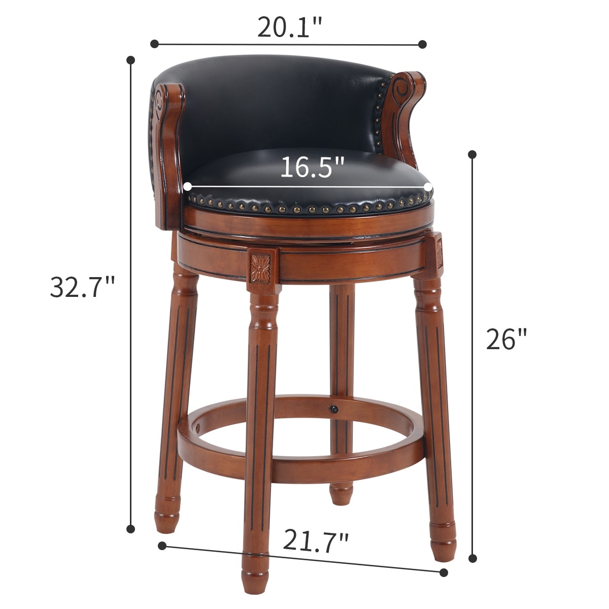 Seat height 26'' Cow top Leather Wooden Bar Stools, 360 Degree Swivel Bar Height Chair