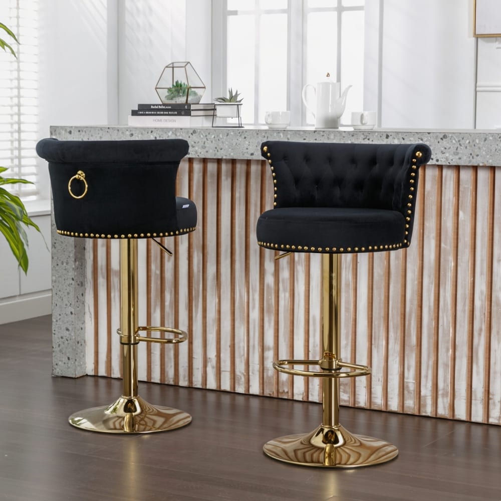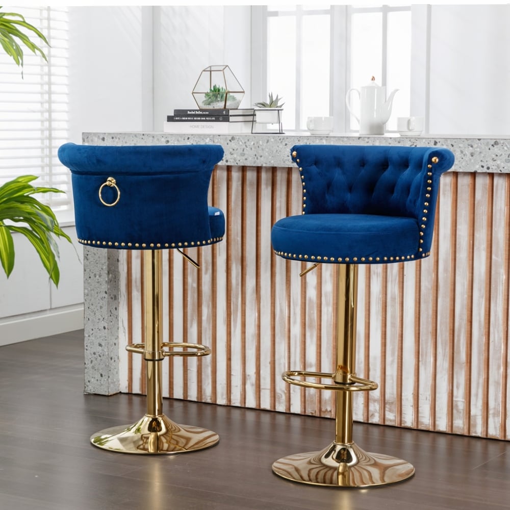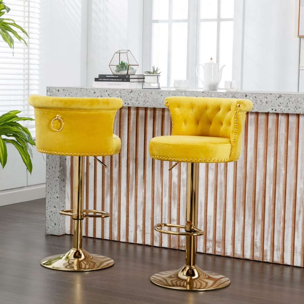 Swivel Velvet Barstools Adjusatble Seat Height, Chrome base Bar Stools with Backs Comfortable Tufted Set of 2
