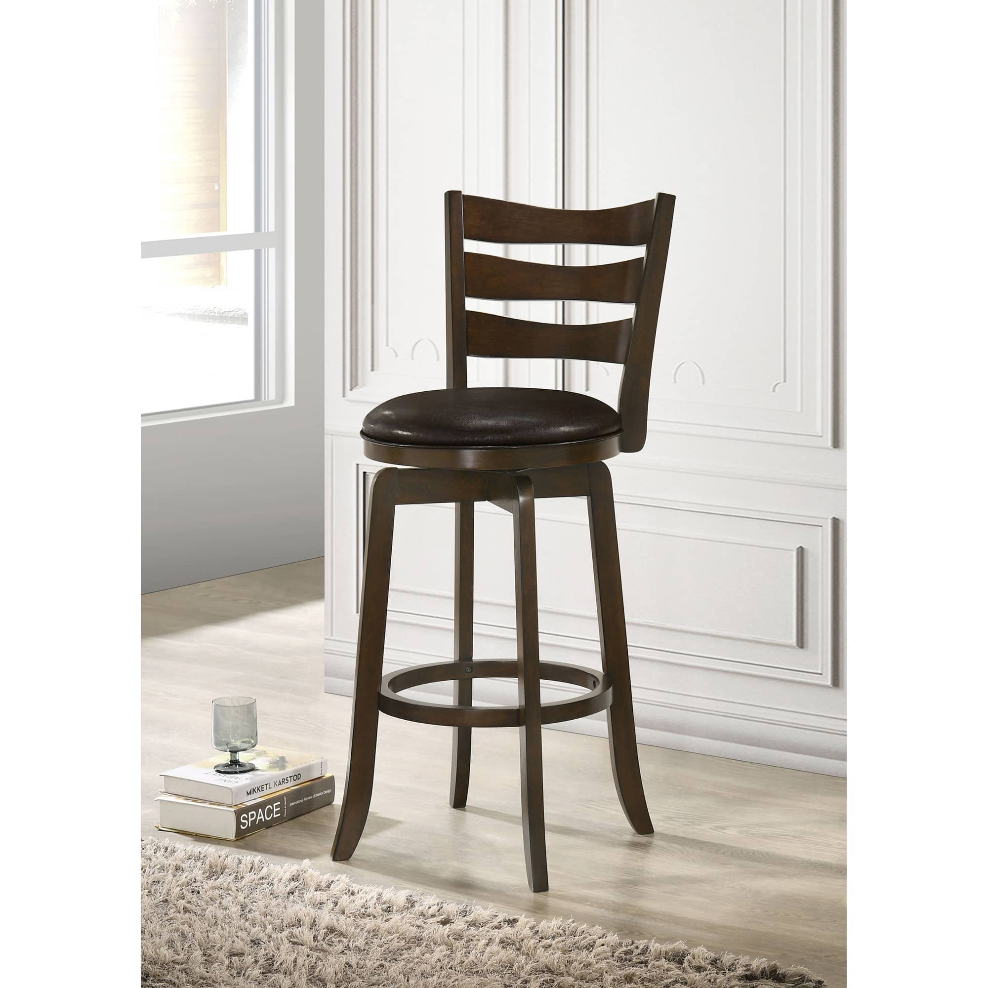 Fenster Dark Brown Wood Pub Height Swivel Bar Chair