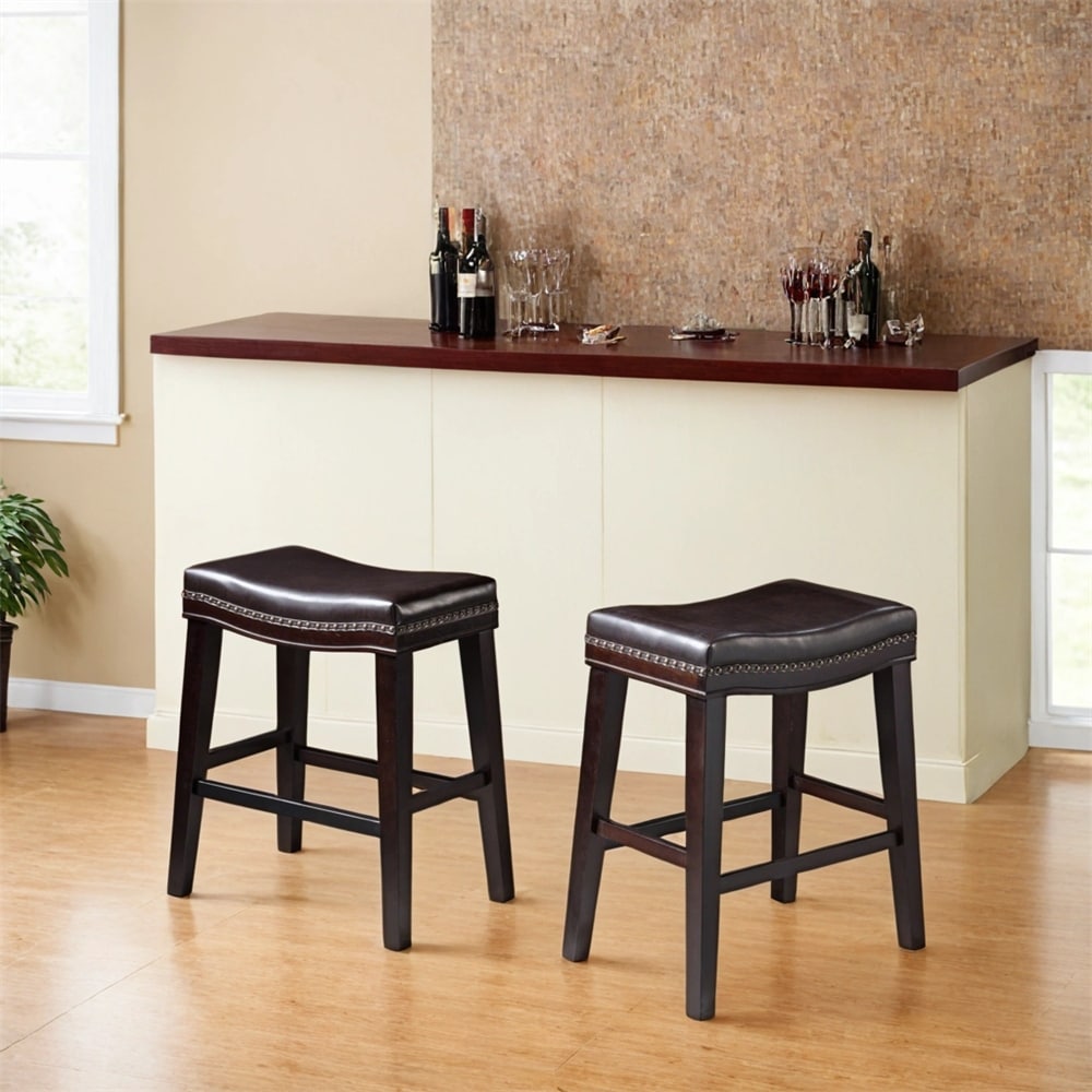 26" Upholstered Saddle Counter Stool with Nailhead Trim (Set of 2)