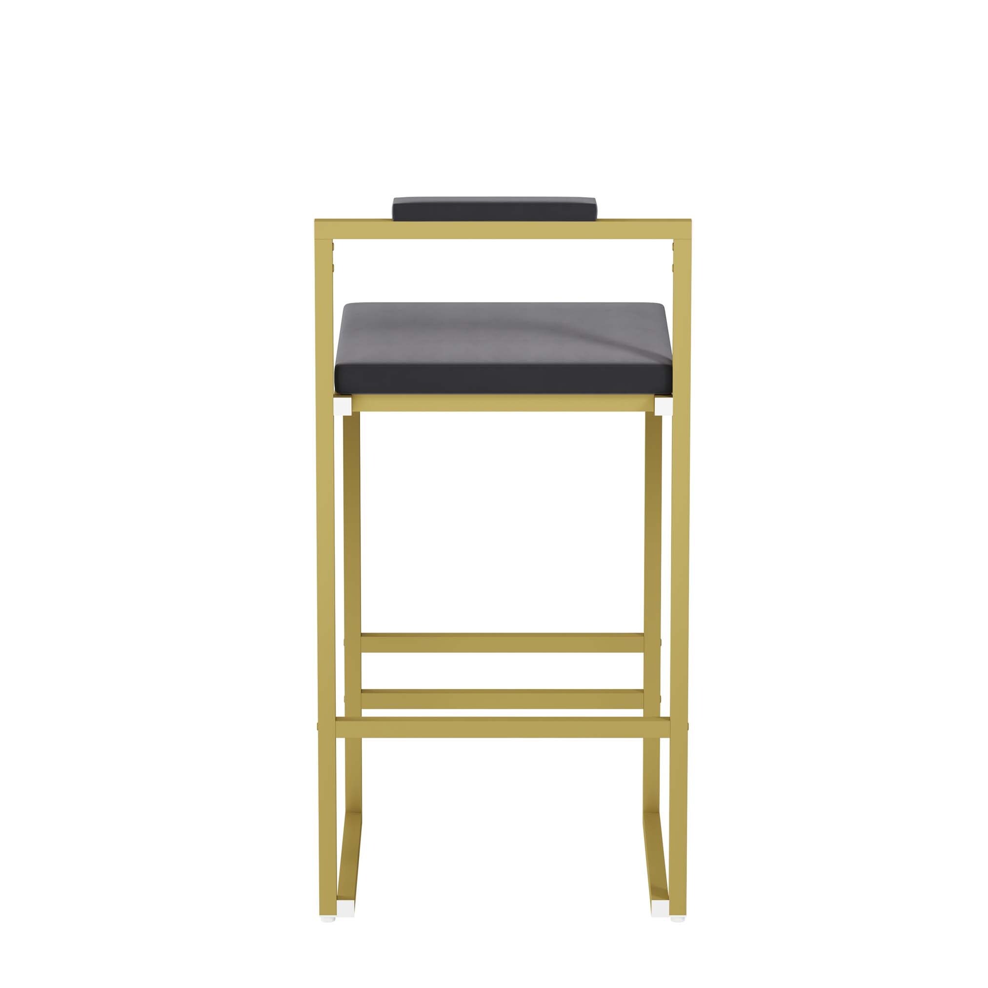 Ethan Indoor Metal Upholstered Barstool, Faux Leather Seat With Wowen Rattan Decorated Backrest, Set of 2