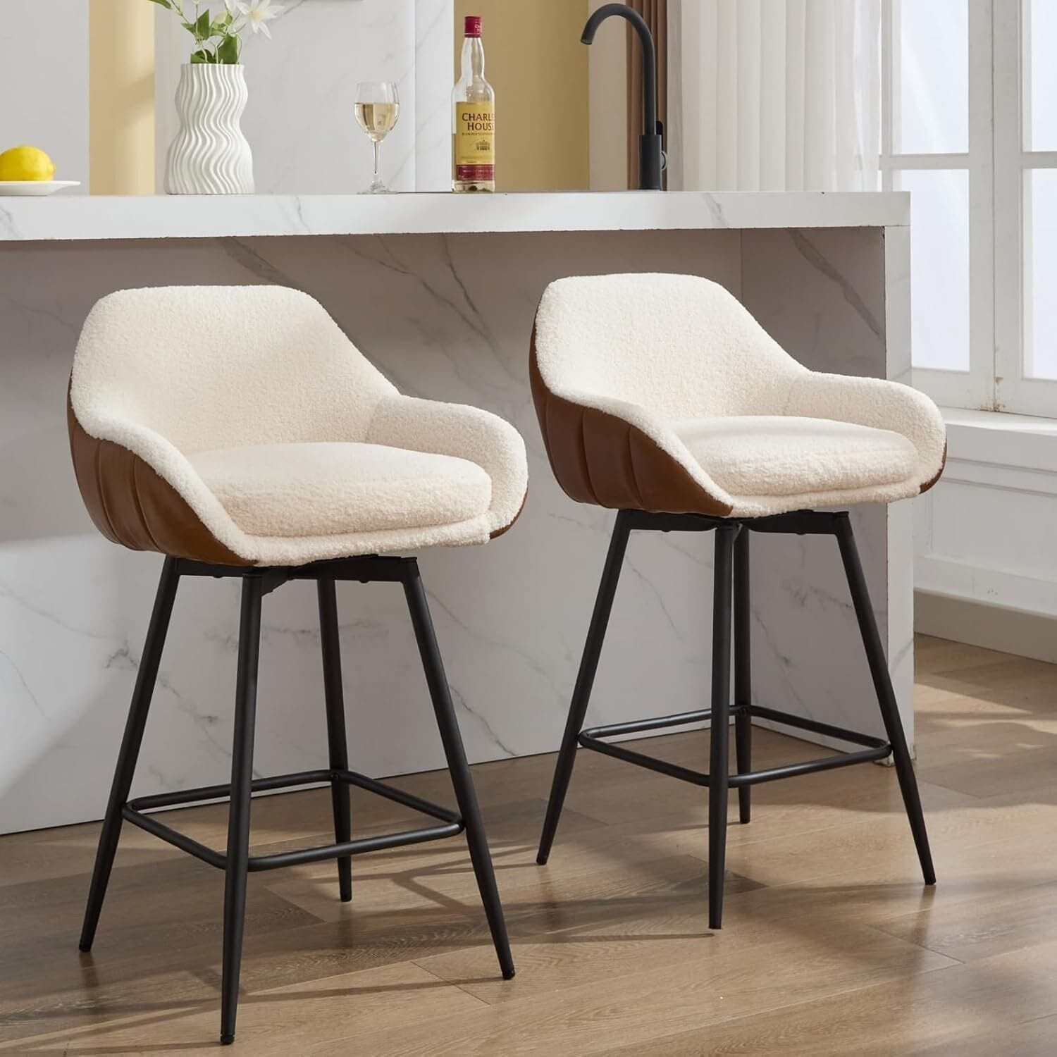 Upholstered Sherpa Fabric Swivel Bar Stools Set of 2