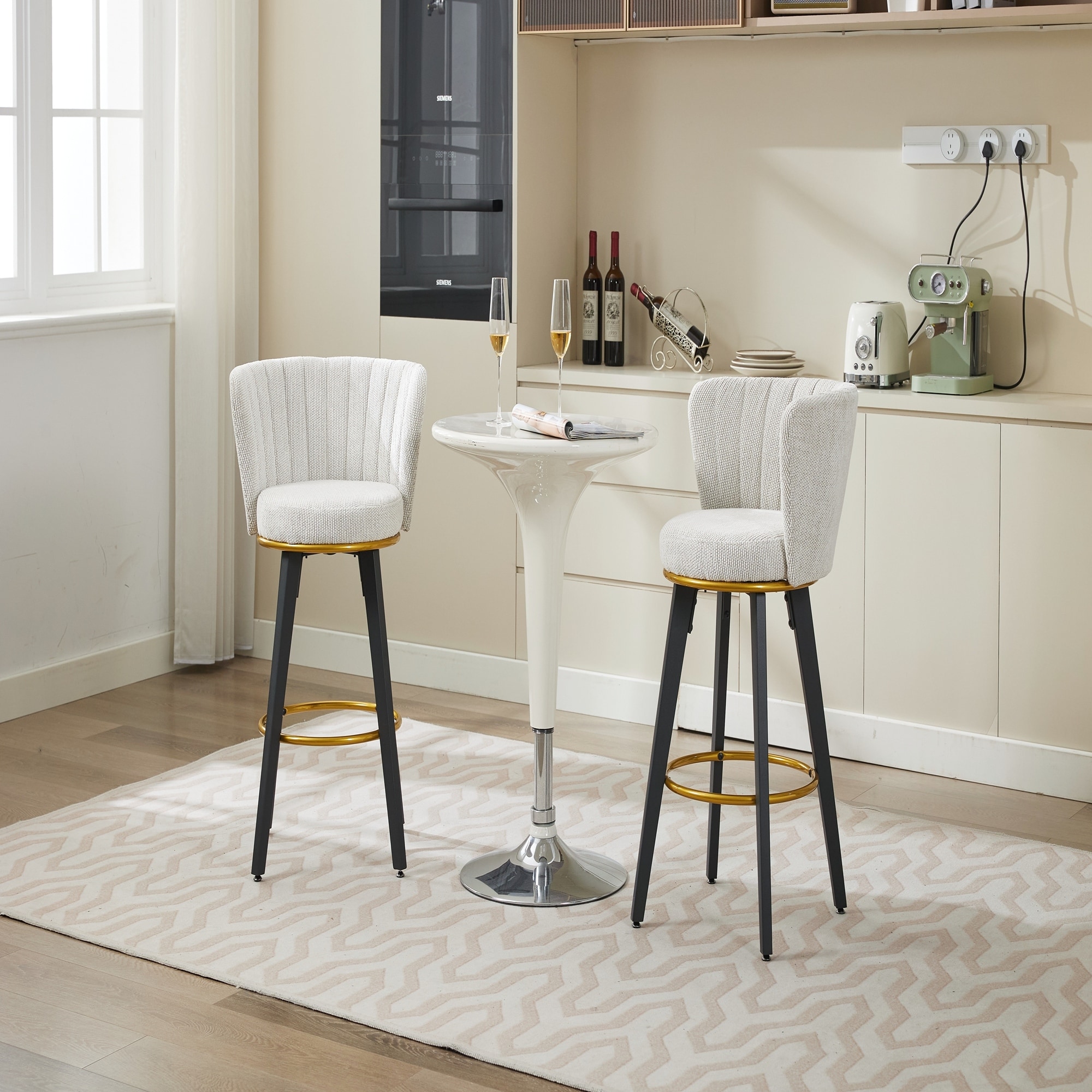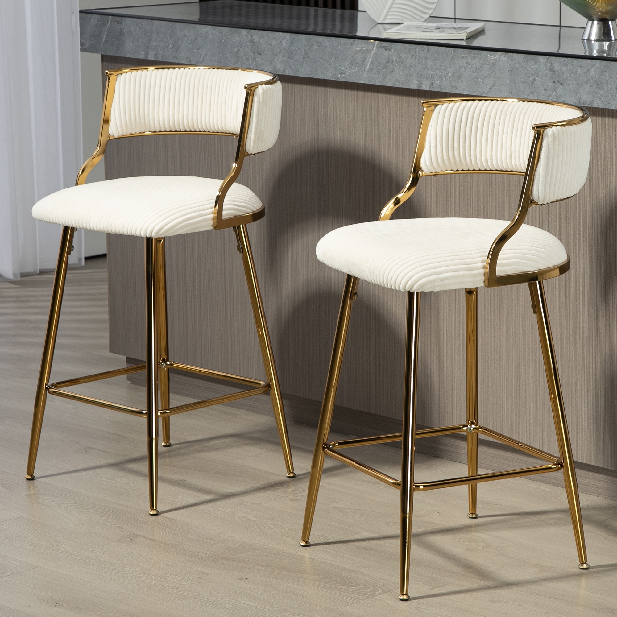 Curved Back Bar Stools Counter Dining Chair with Gold Iron Arm(2pc)