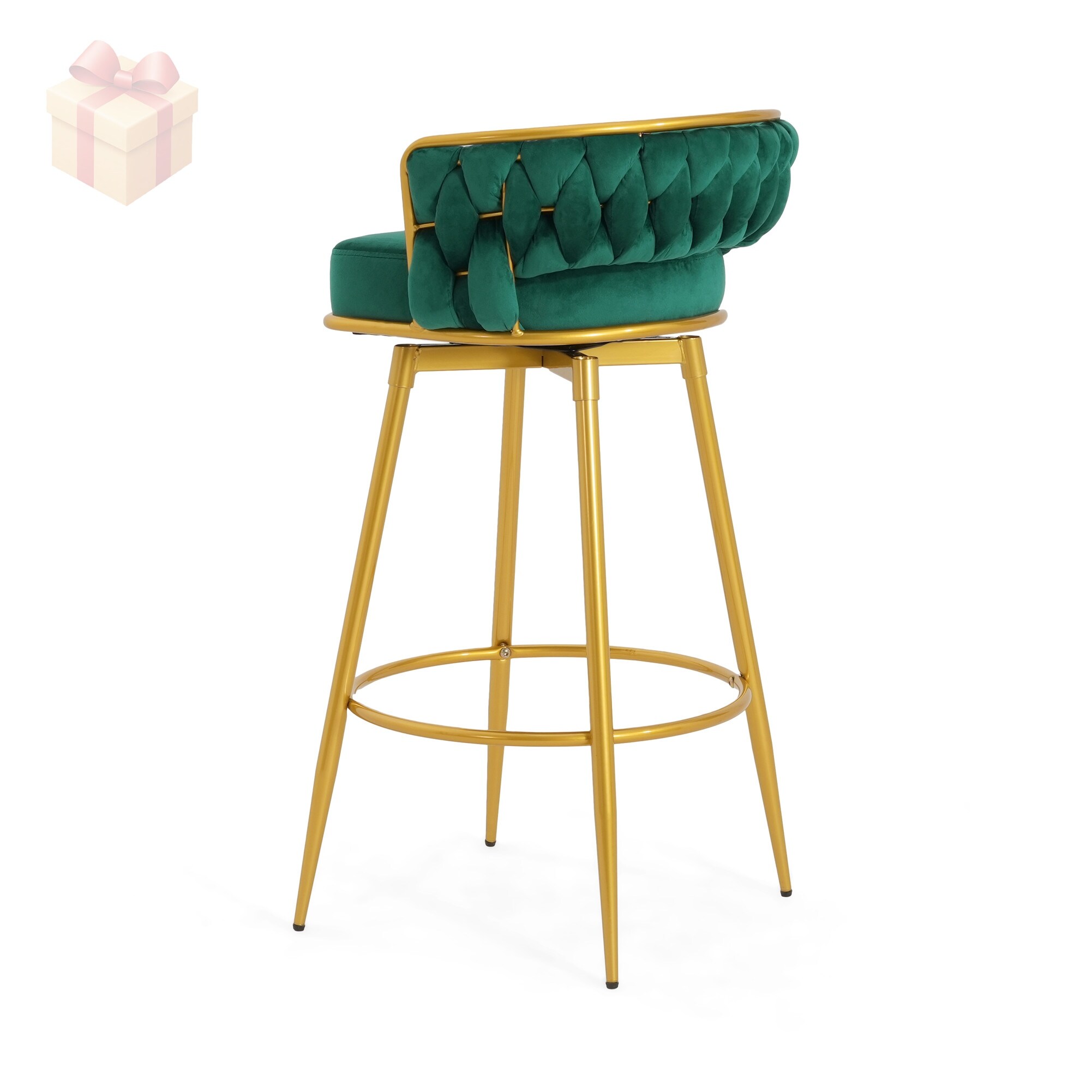 Luxurious Velvet Upholstered Wing-Back Barstools with Exquisite Decoration and Sturdy Wooden Legs for Leisure