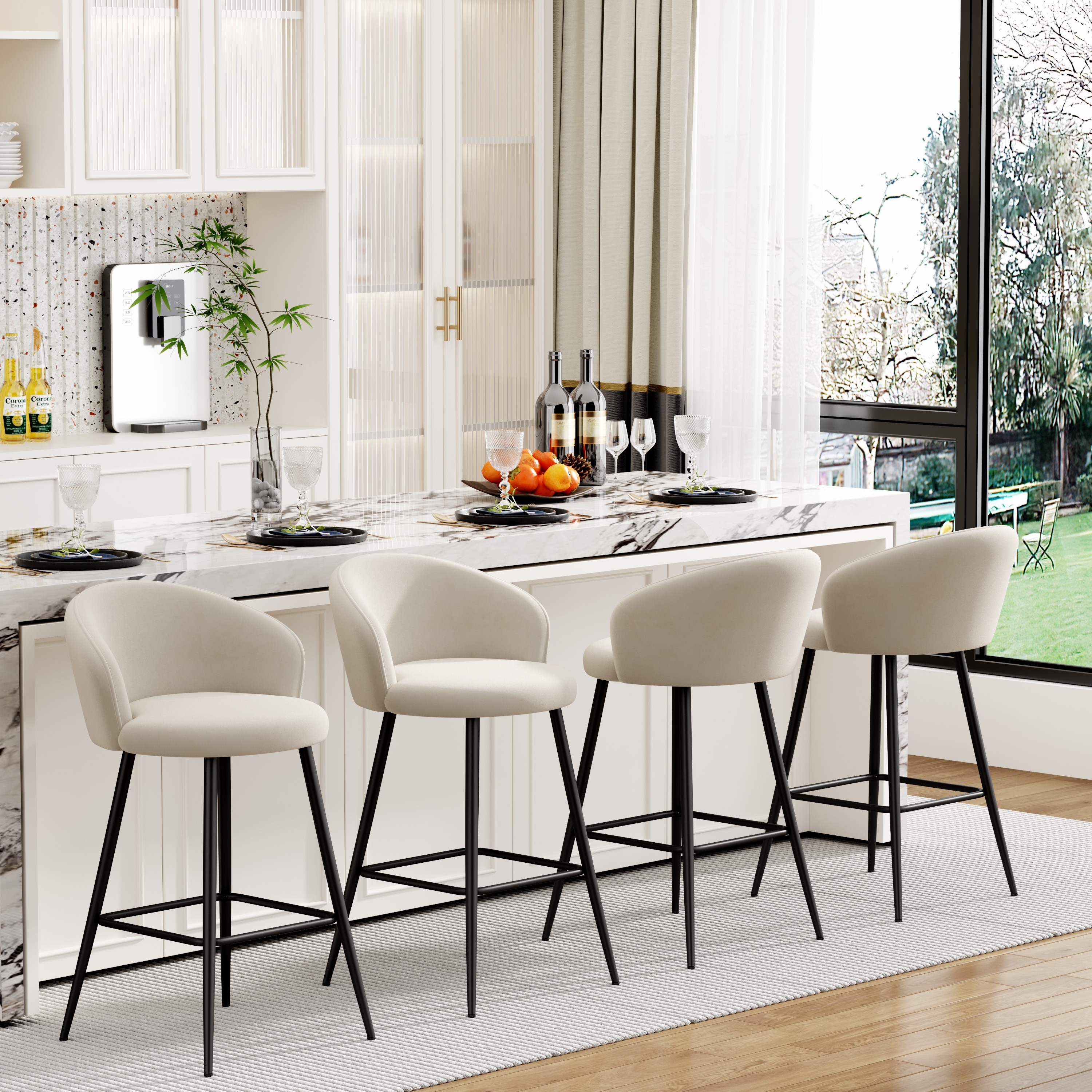 24" Height Upholstered Counter Stools With Metal Frame, Bar Chairs for Kitchen lsland with back and footrest