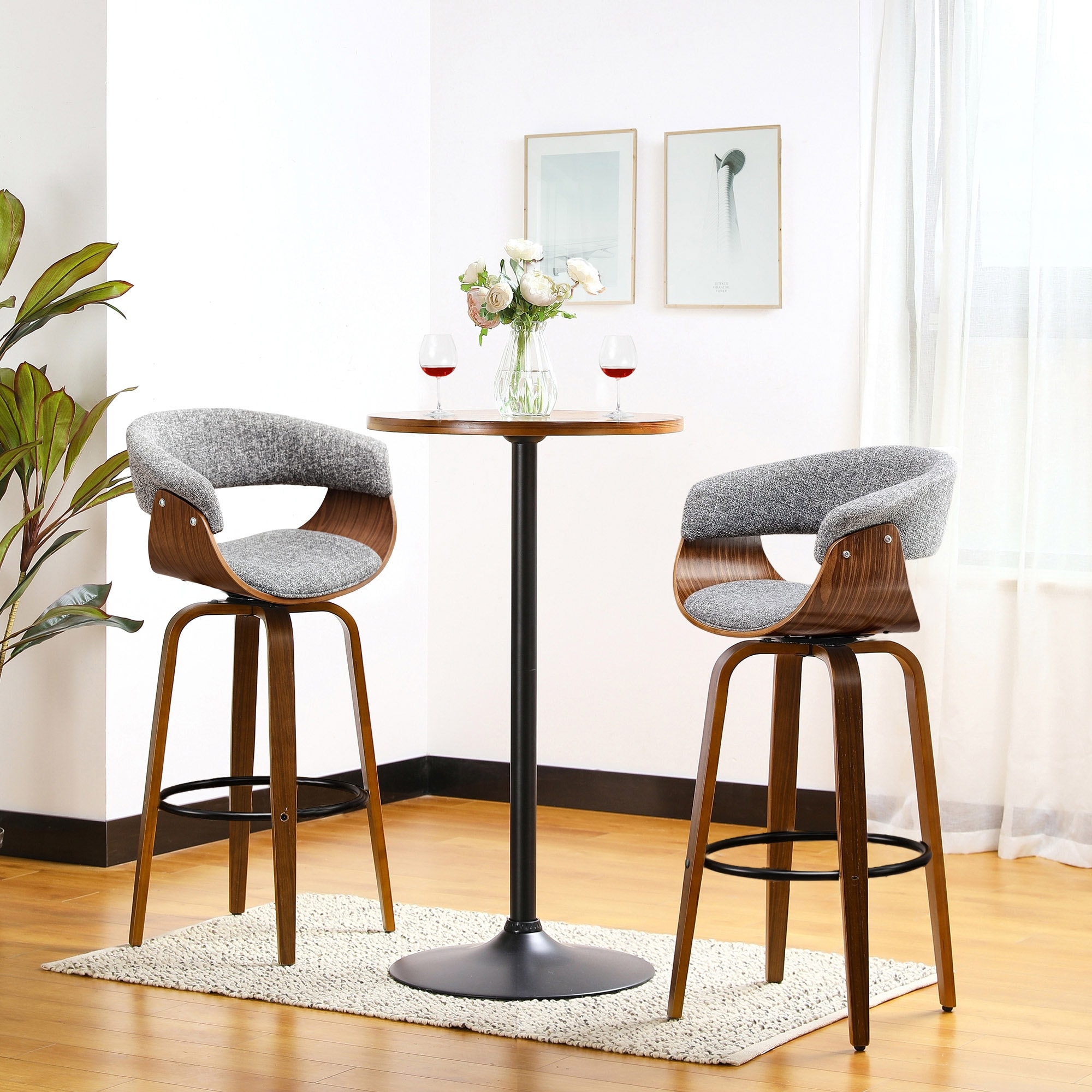 Skara Mid-Century Swivel Counter Stool, Upholstered Counter Height Chair with Bentwood Legs