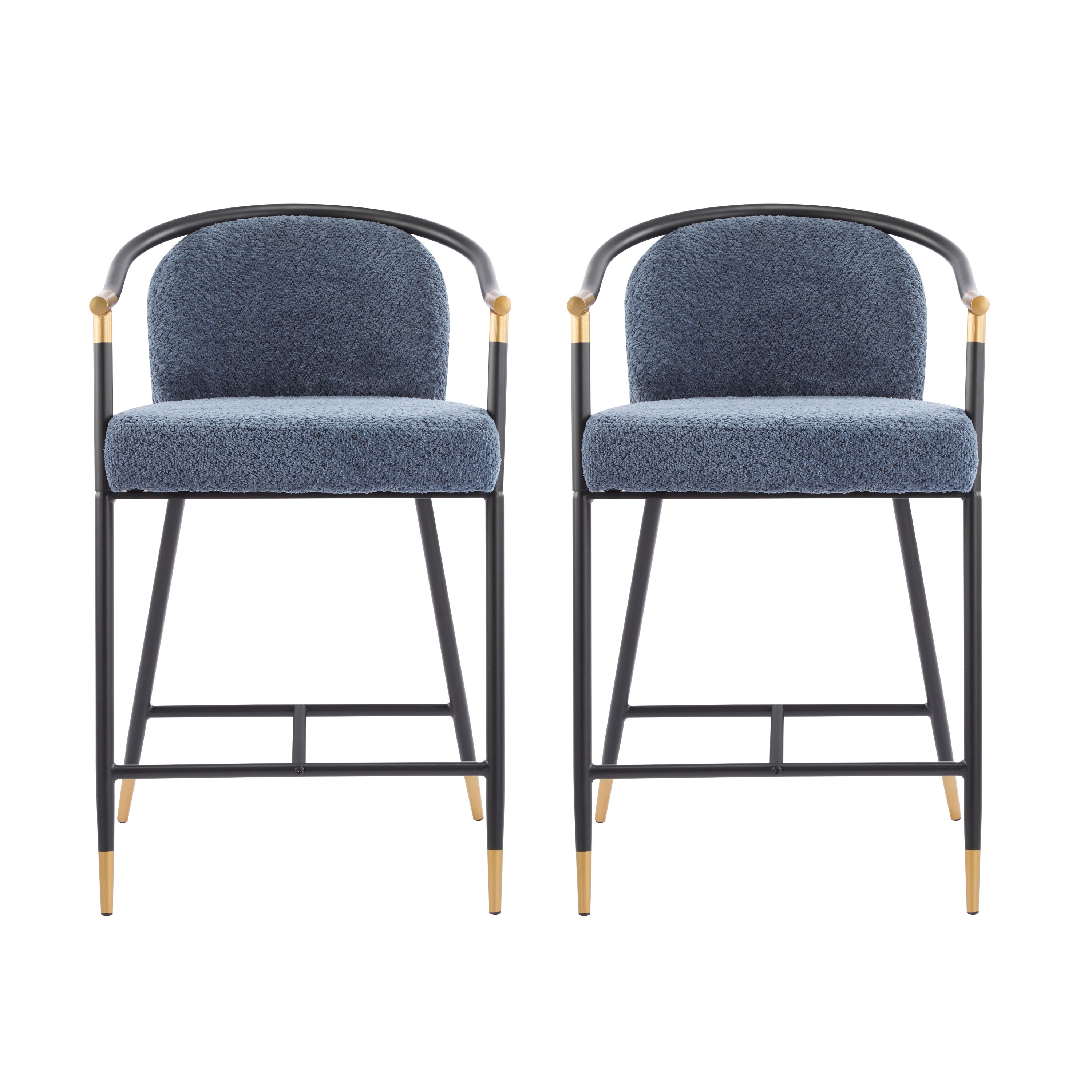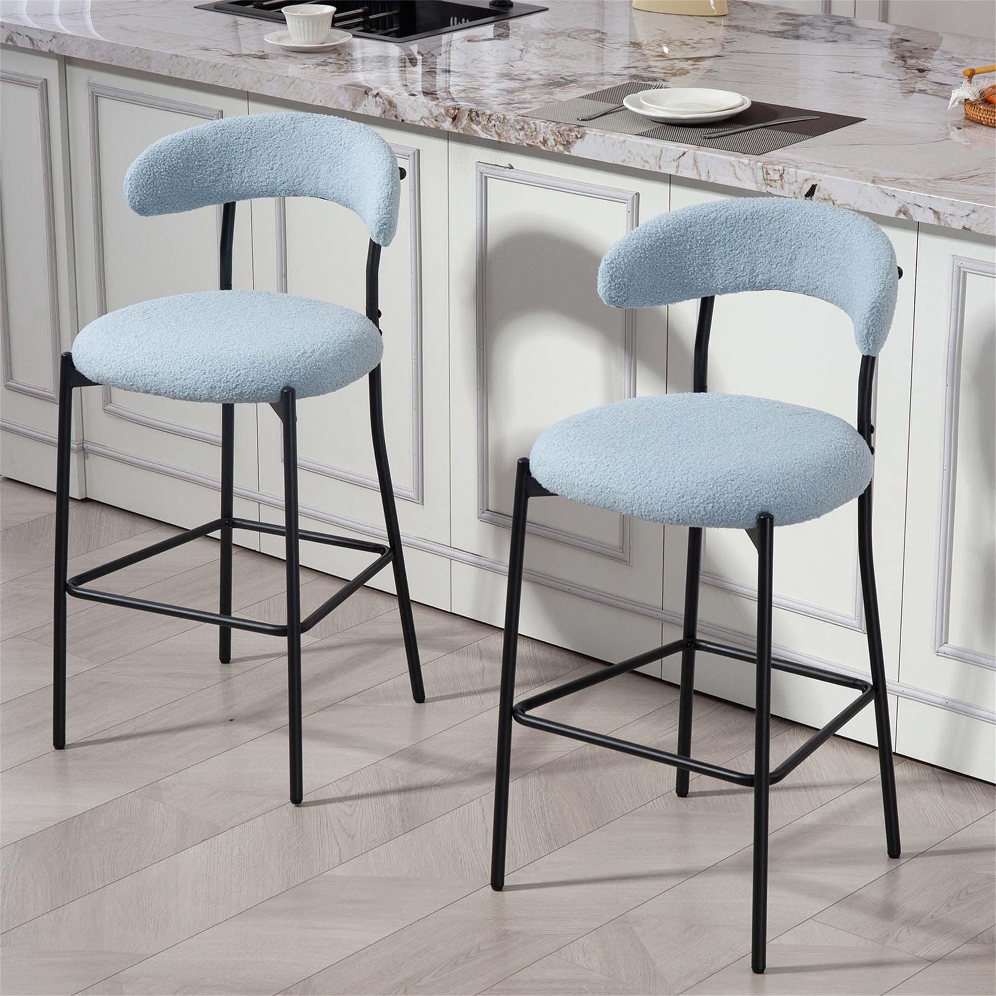 26'' Counter Height Bar Stools with Teddy Fabric Cover, Black Powder Coated Base, and Footrest for Kitchen Island (BLUE)