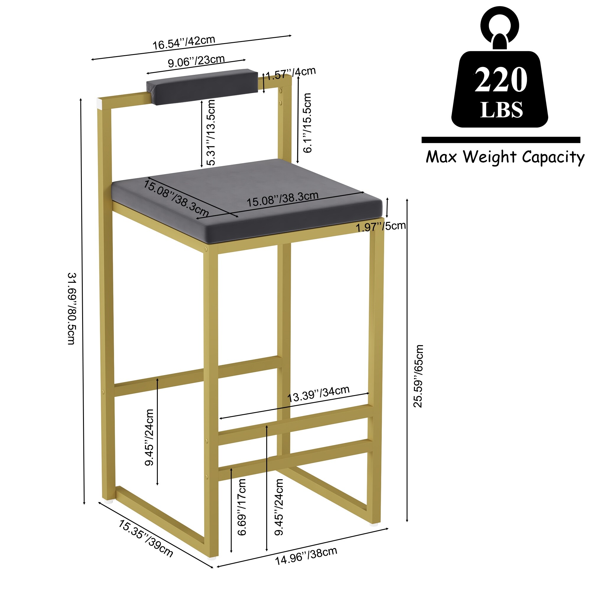 Upholstered Velvet Bar Stools Set of 2 Modern Kitchen Counter Height Barstools