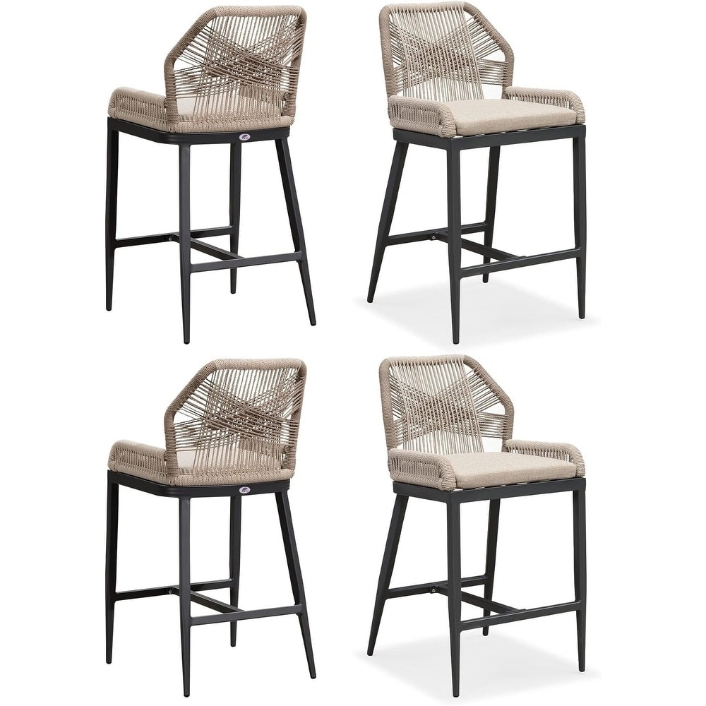 PURPLE LEAF Modern Counter Bar Stools Set of 4 Rattan Chairs with Back and Cushion Kitchen Barstools