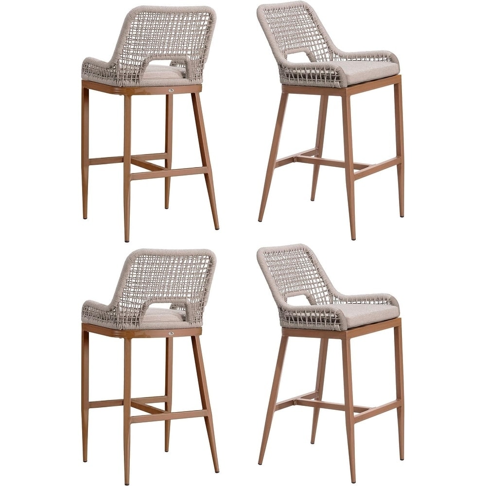 PURPLE LEAF Modern Counter Bar Stools Set of 4 Rattan Chairs with Back and Cushion Kitchen Barstools