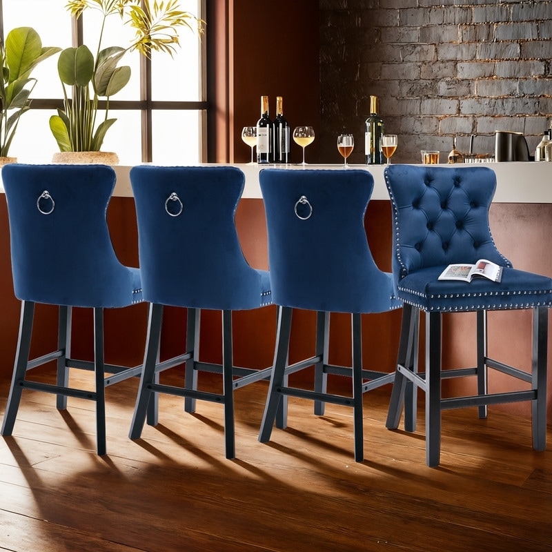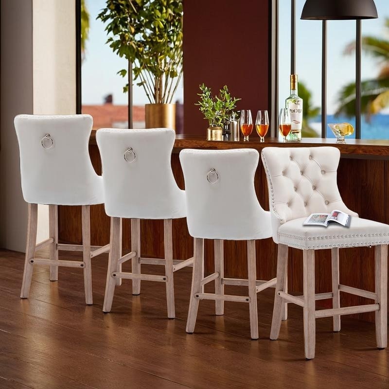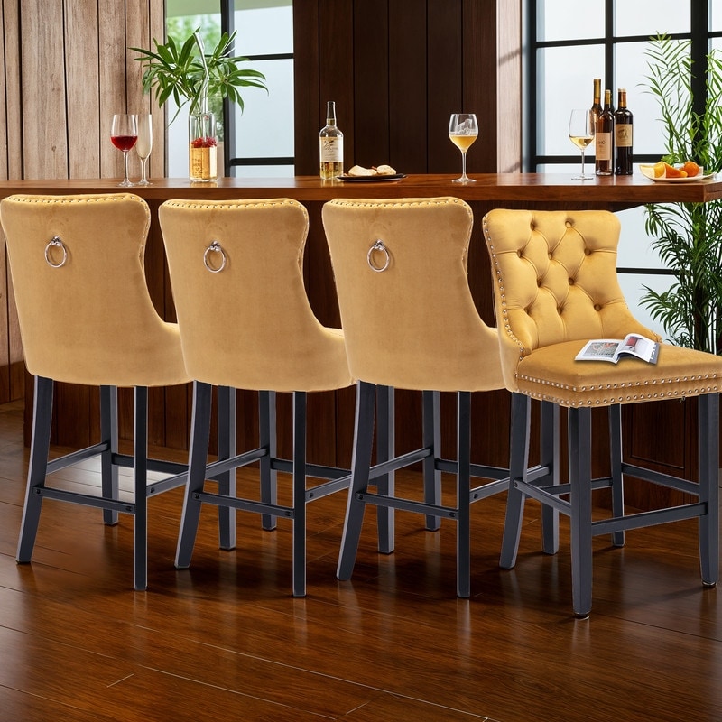 Contemporary Upholstered Velvet Barstools with Button Tufted Set of 4