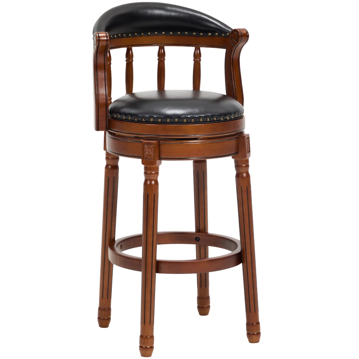 360 Degree Swivel Bar Stool with Cow Top Leather Seat and Solid Wood Frame