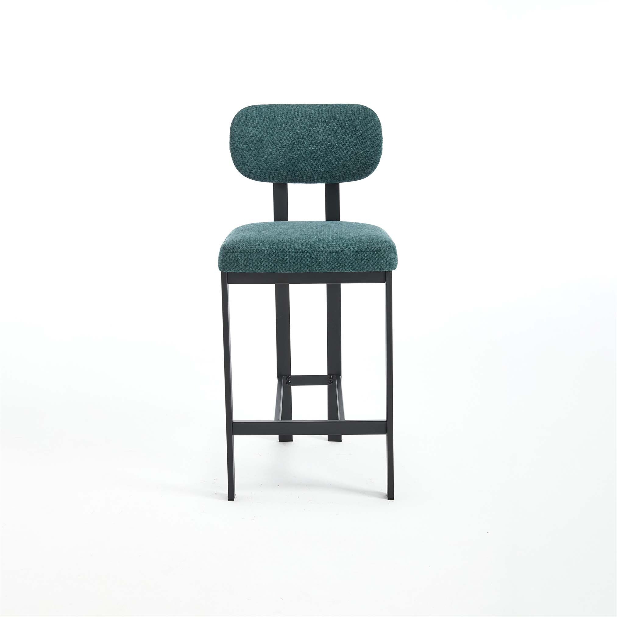 Set of 2 Modern Upholstered Fabric Bar Stools, 26 Inch Counter Height with Comfortable Cushions and Black Metal Legs
