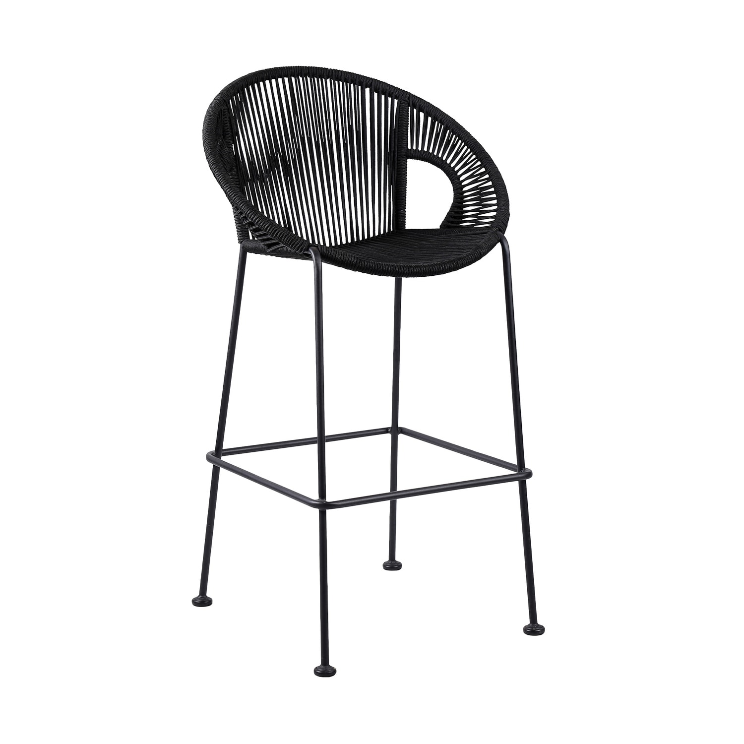 26 Inch Steel Bar Stool for Indoor Outdoor Use with Vintage Rope Seat, Durable Counter Height Patio Bar Furniture