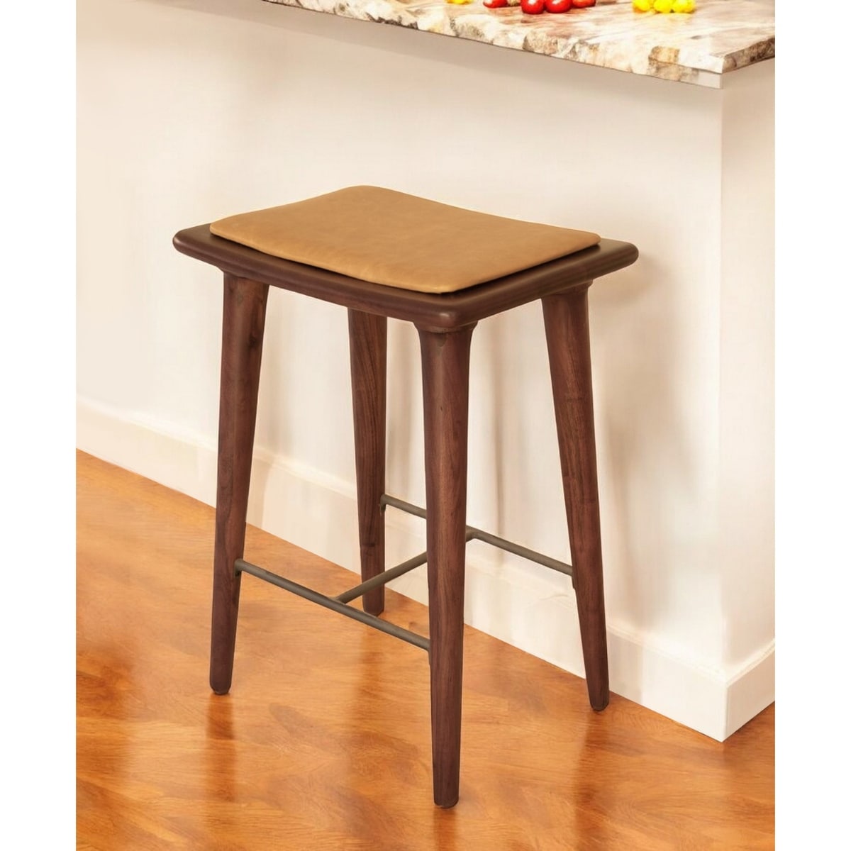 24” Modern Mango Wood Counter Height Stool with Cream Upholstered Faux Leather Seat and Footrest - 24" H x 17" W x 13" D