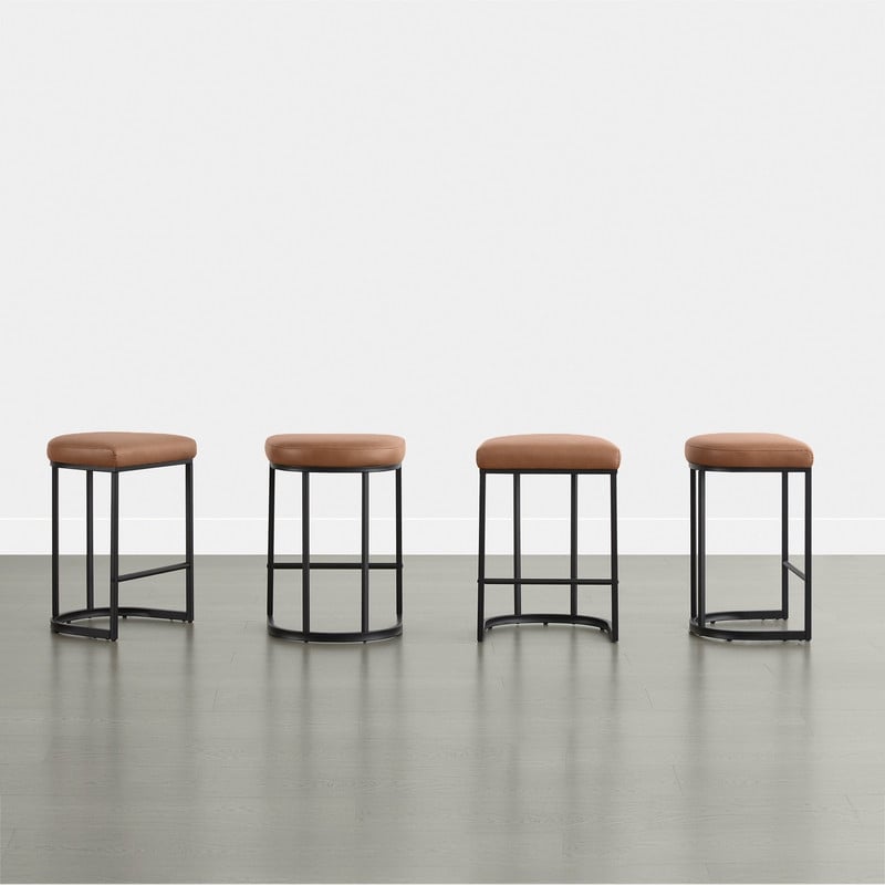 Modern Curved Upholstered Bar Stool with Metal Frame