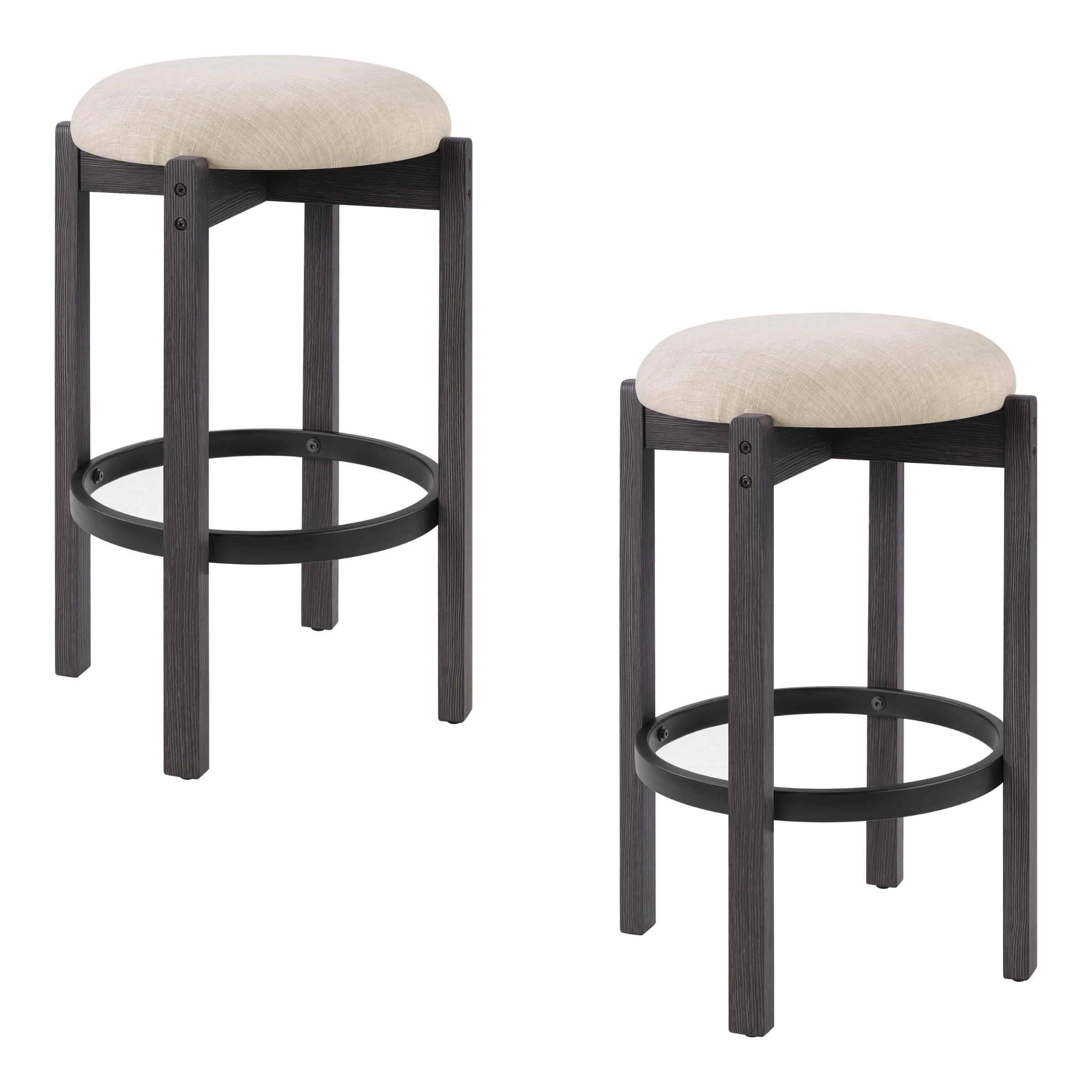 Counter Height Bar Stools Set of 2, Upholstered Linen Bar Chairs, Metal Footrest and Frame.