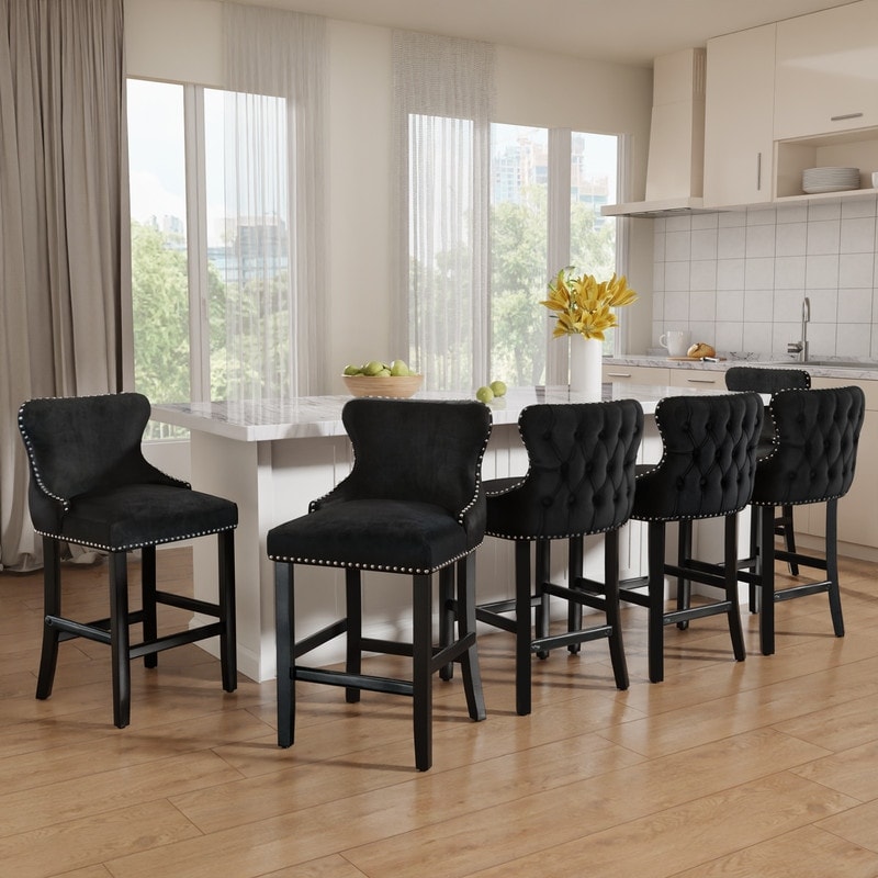 Swivel Velvet Barstools Adjusatble Seat Height From 25-33 Inch