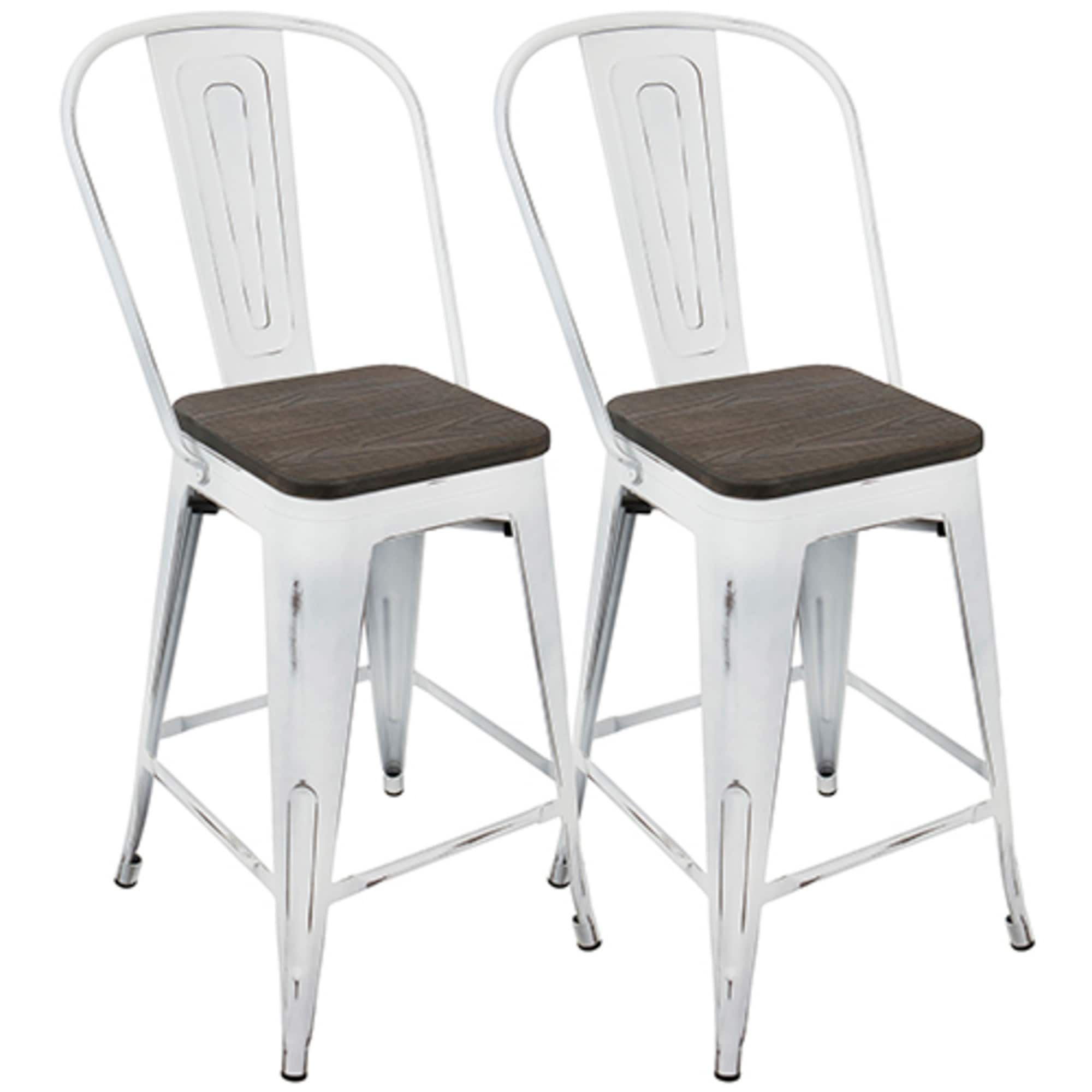2 Oregon Industrial Vintage White Espresso High Back Barstools 39.5"