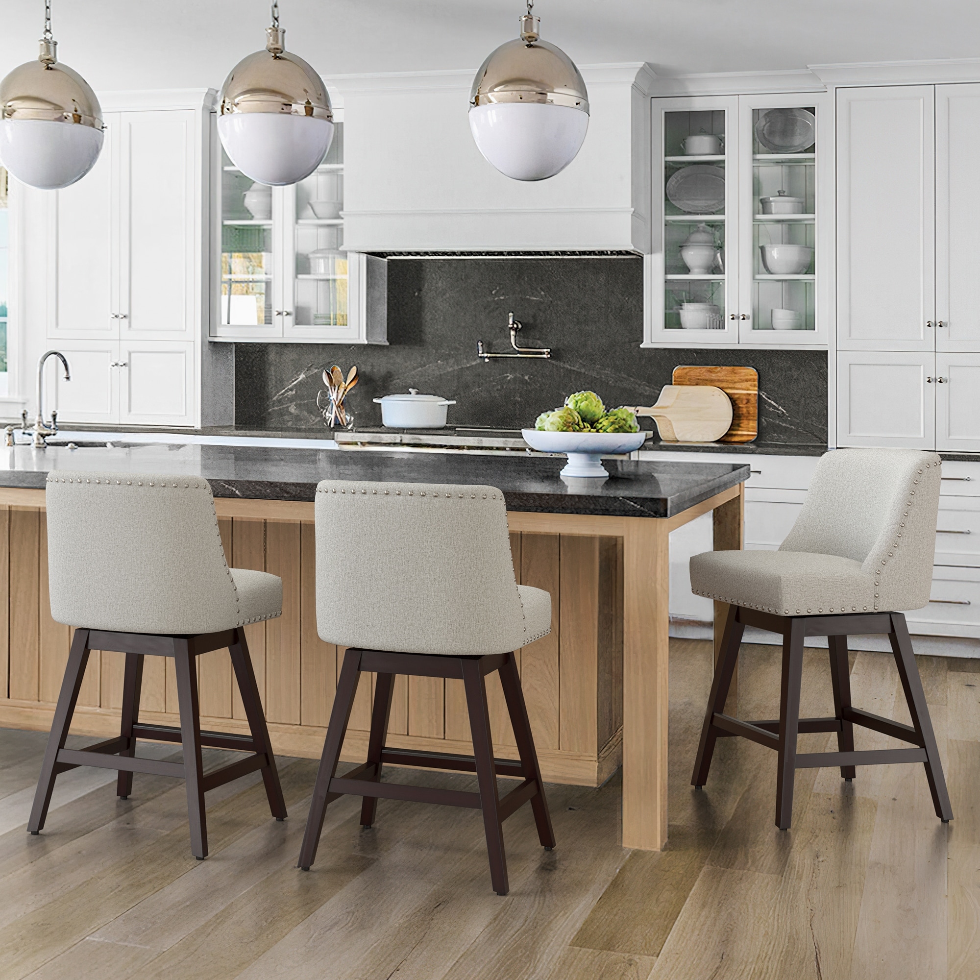 Basila Swivel Bar Stool, Upholstered Counter Height Chair with Solid Wood Frame