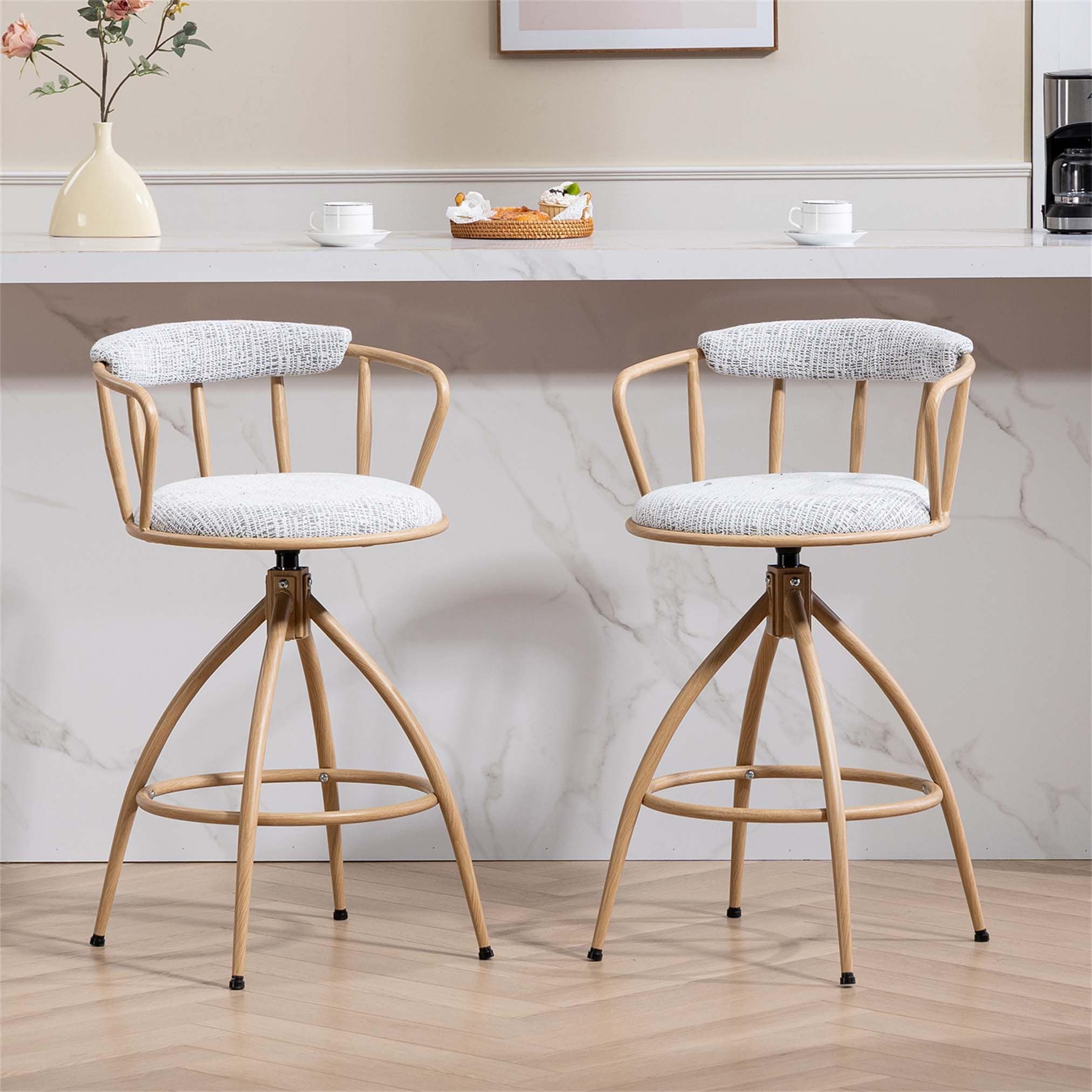 26'' Swivel Counter Height Bar Stool, Set of 2 with Fabric Seat and Water Transfer Printed Metal Frame