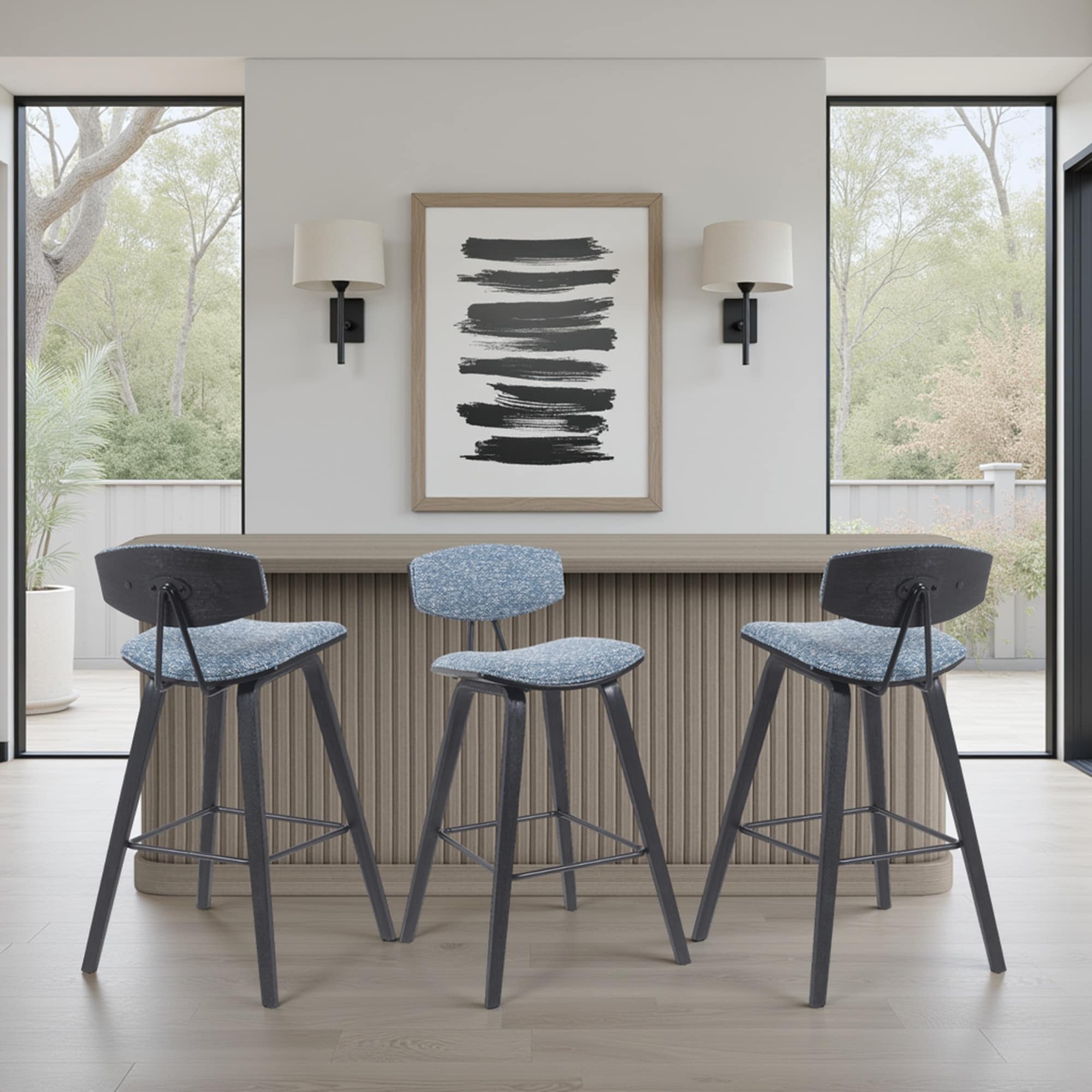 Fox Mid-Century Bar Stool, Upholstered Counter Height Chair with Bentwood Legs
