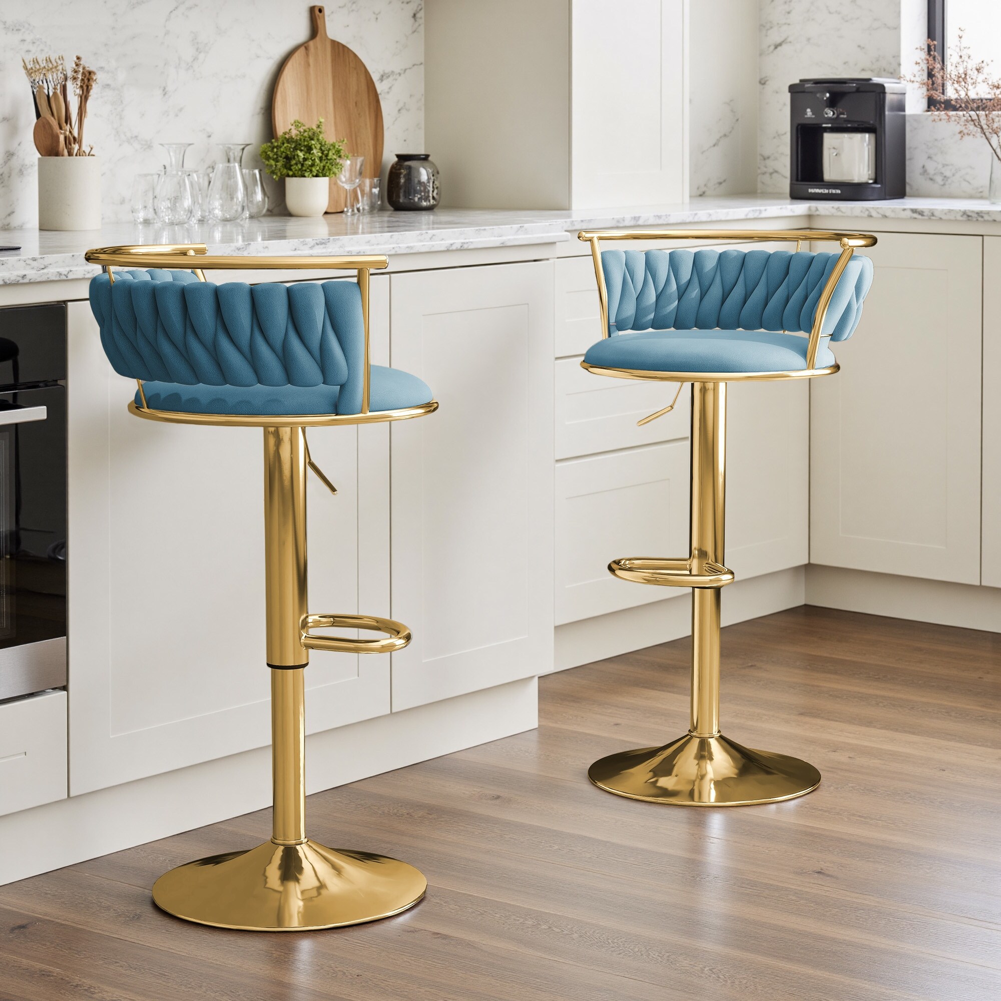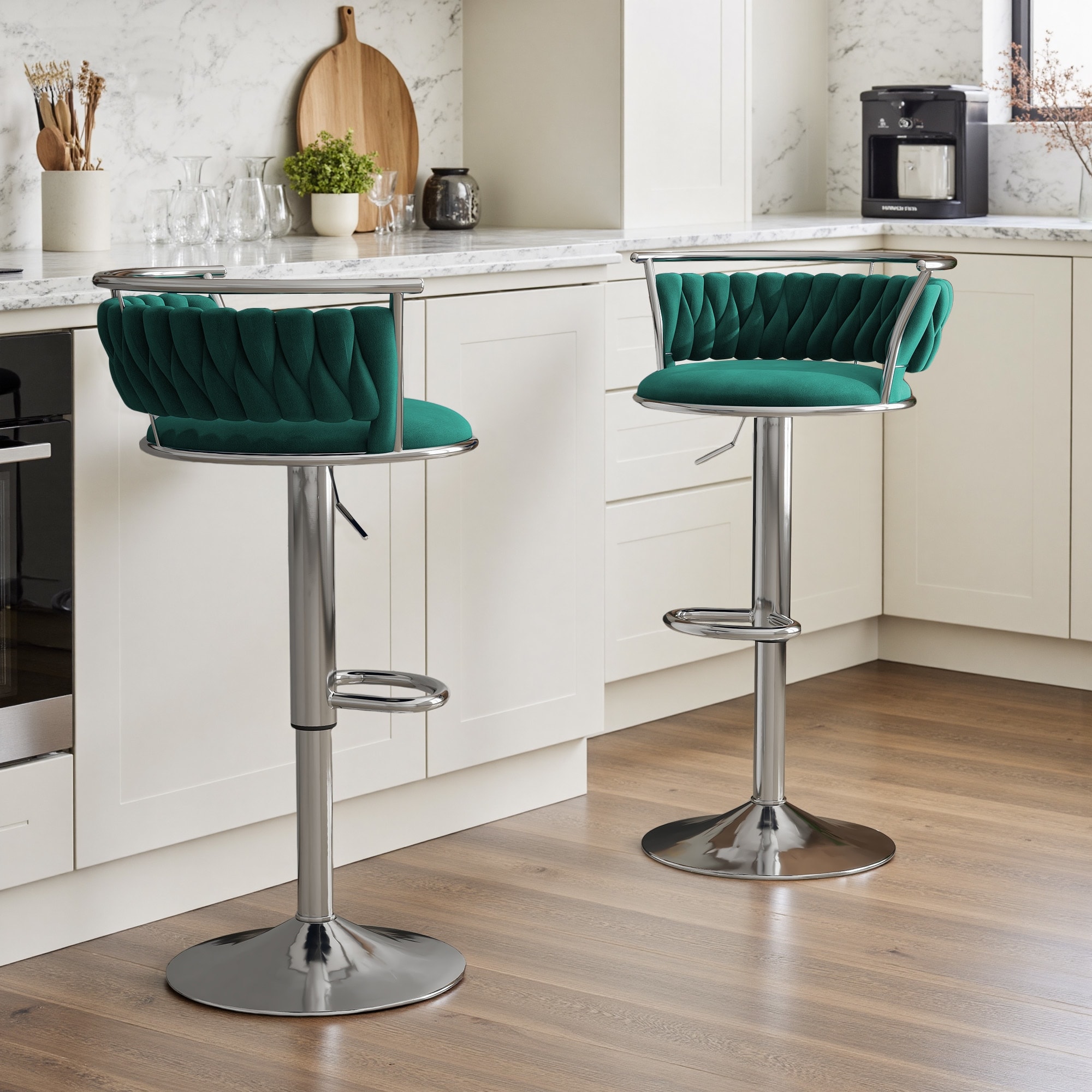 Set of 2 Velvet Adjustable Swivel Bar Stools