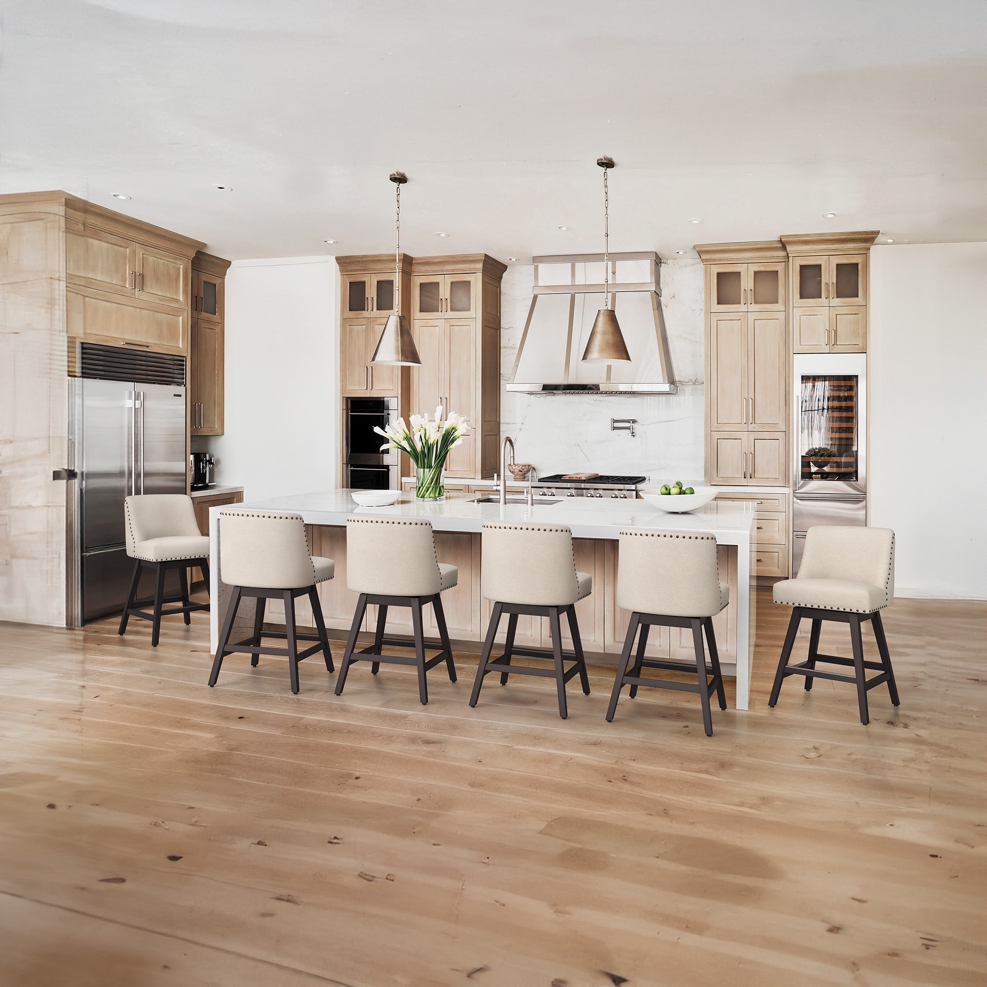 Spruce & Spring Modern Swivel Bar Stool with Curved Back & Solid Wood Frame