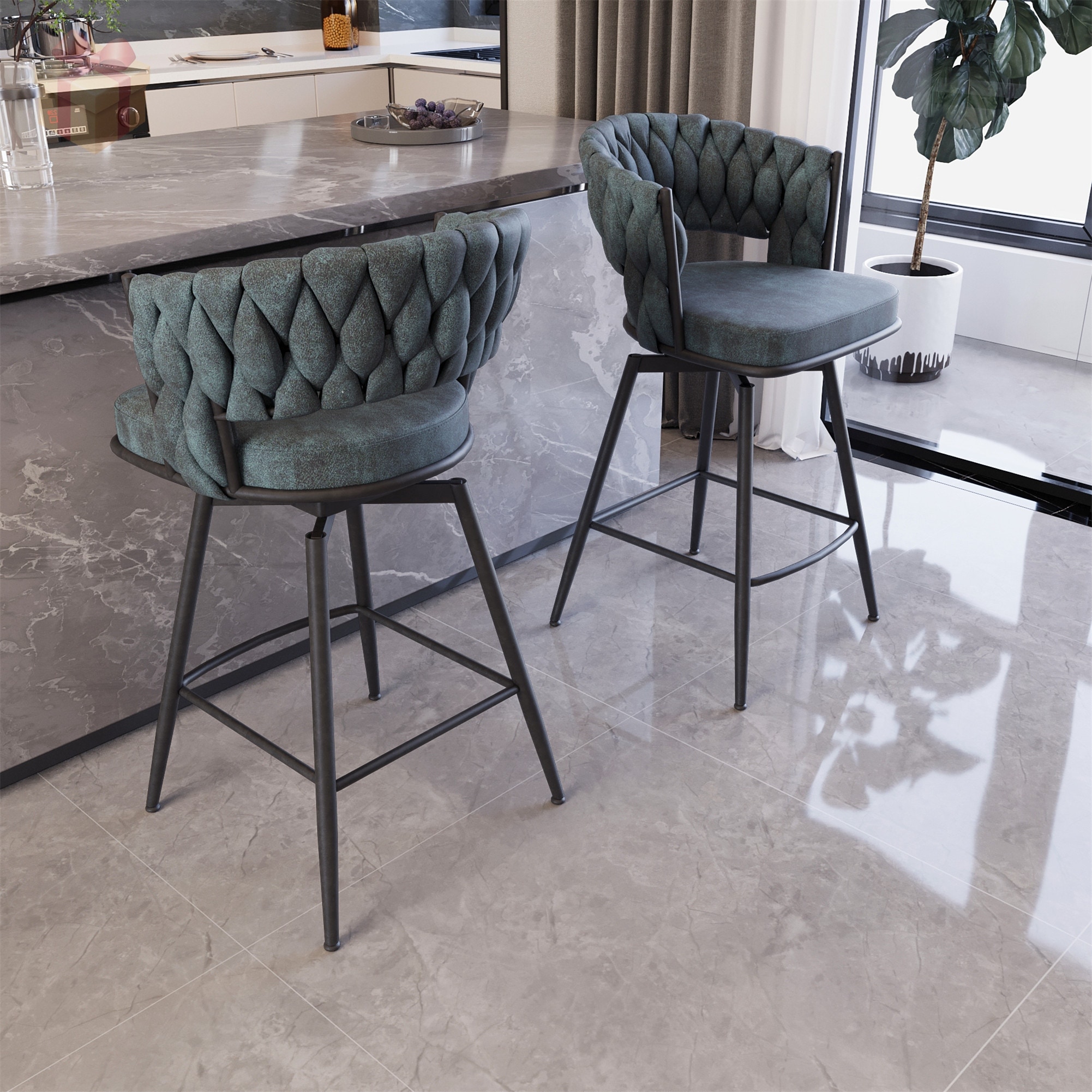 Velvet Swivel Bar Stools Set of 2, Kitchen Island Chairs with Adjusatble Height, Upholstered Bar Stools with Tufted Back