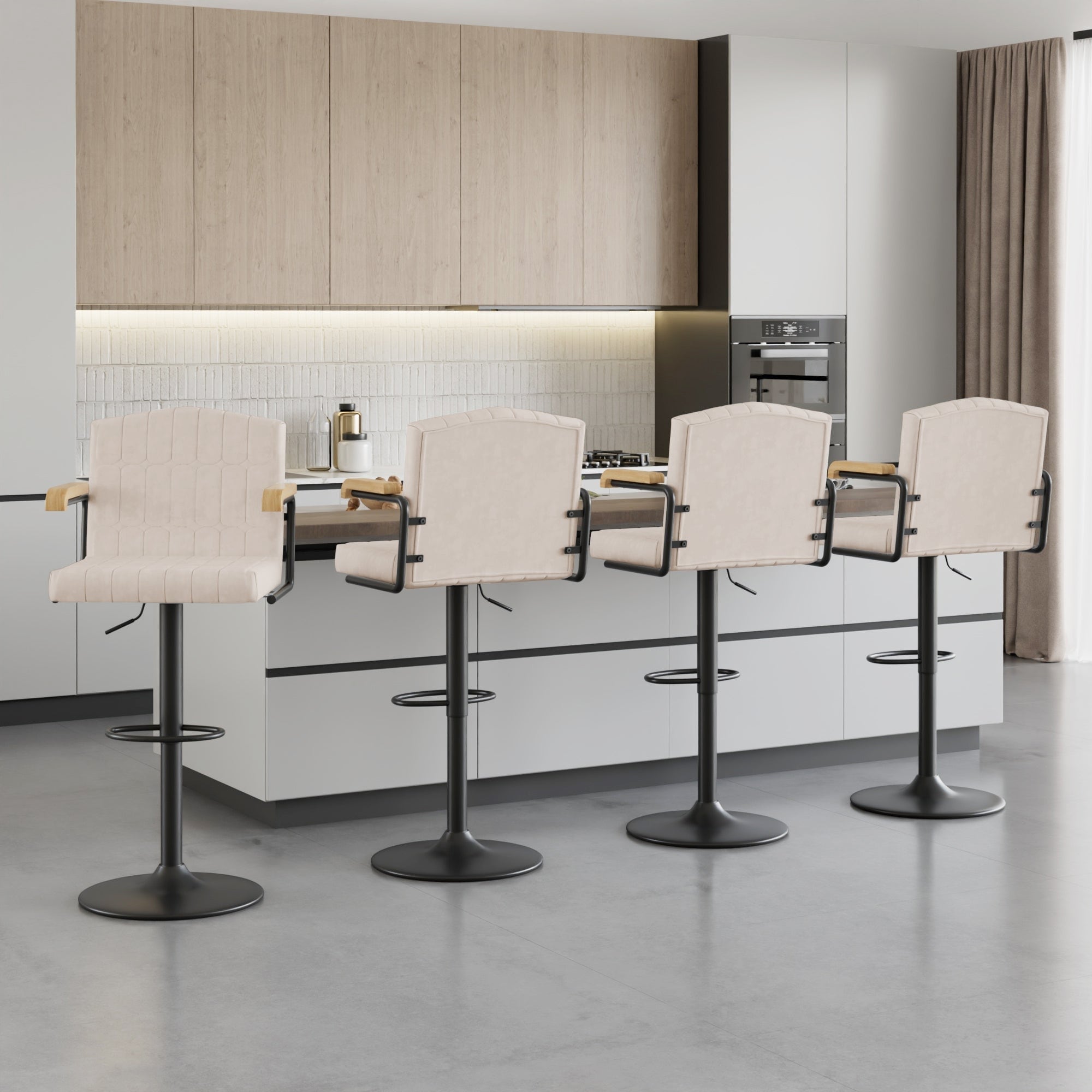 2/4 Pack Beige Flocked Bar Stools Swivel 35.4"-43.3" Adjustable Height Brown Arms Counter Bar Height Kitchen Island Set