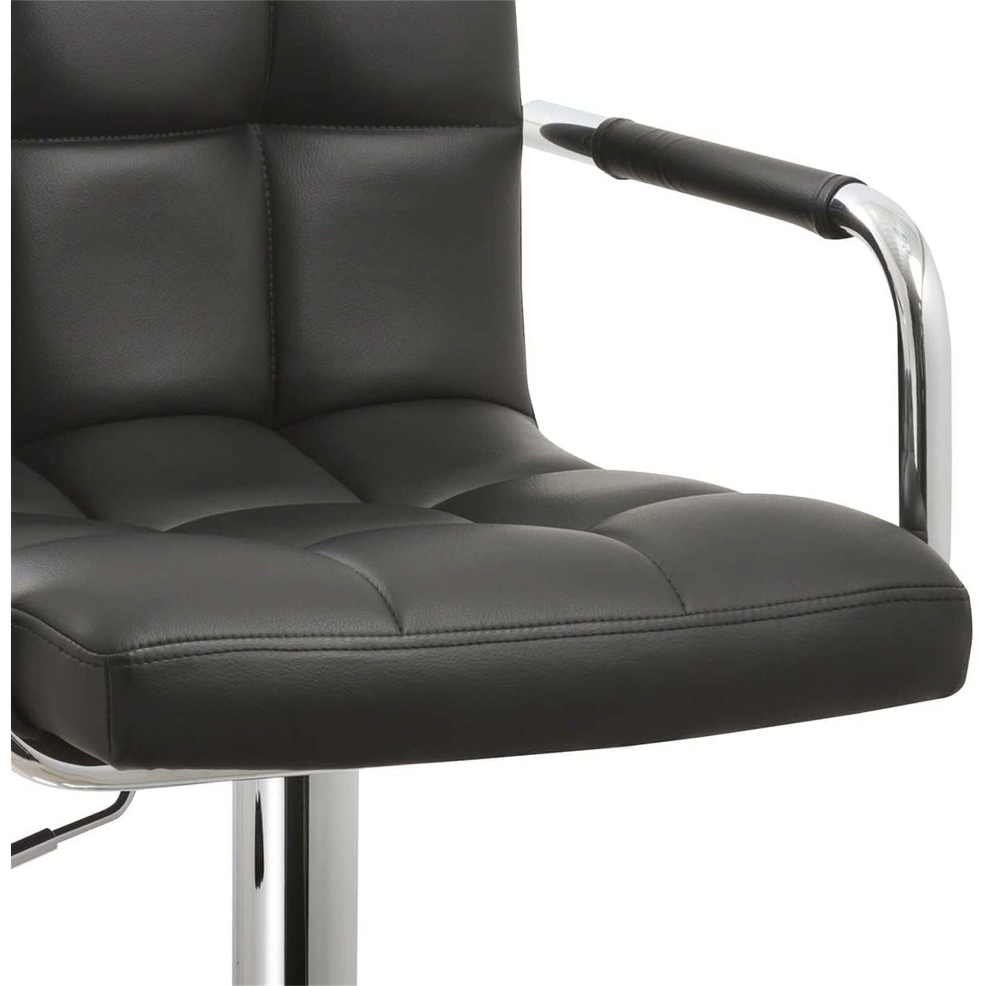 Contemporary Adjustable Swivel Arm Bar Stool with Cushion, Black, Perfect for Modern Kitchens and Bars