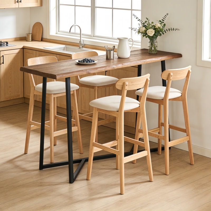 Solid Wood Bar Table, 63" Counter Height Pub Table for Kitchen, Home Bar - 63" L x 19.7" W x 39.37" H