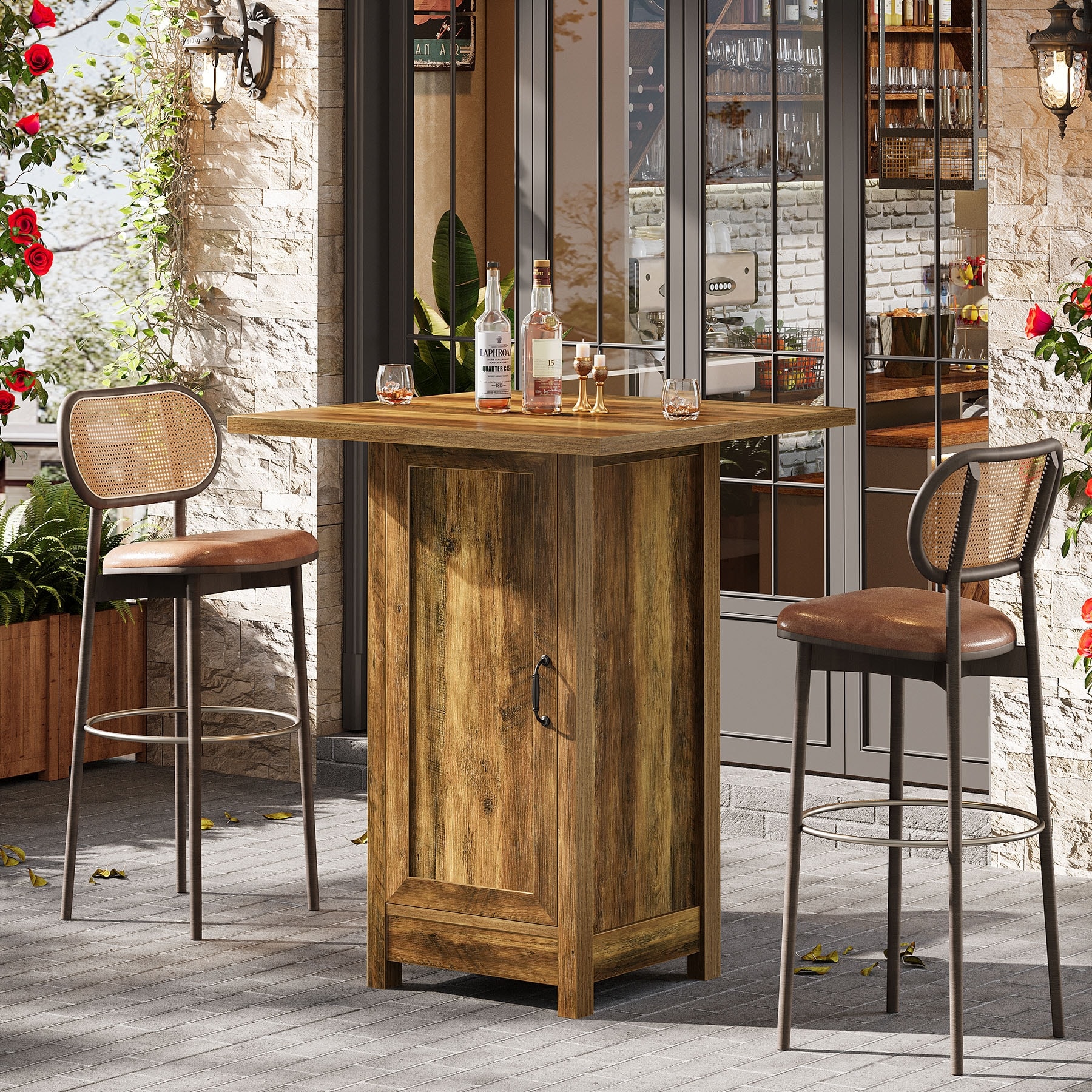 HDPE Indoor/Outdoor Bar Table with Storage Shelves