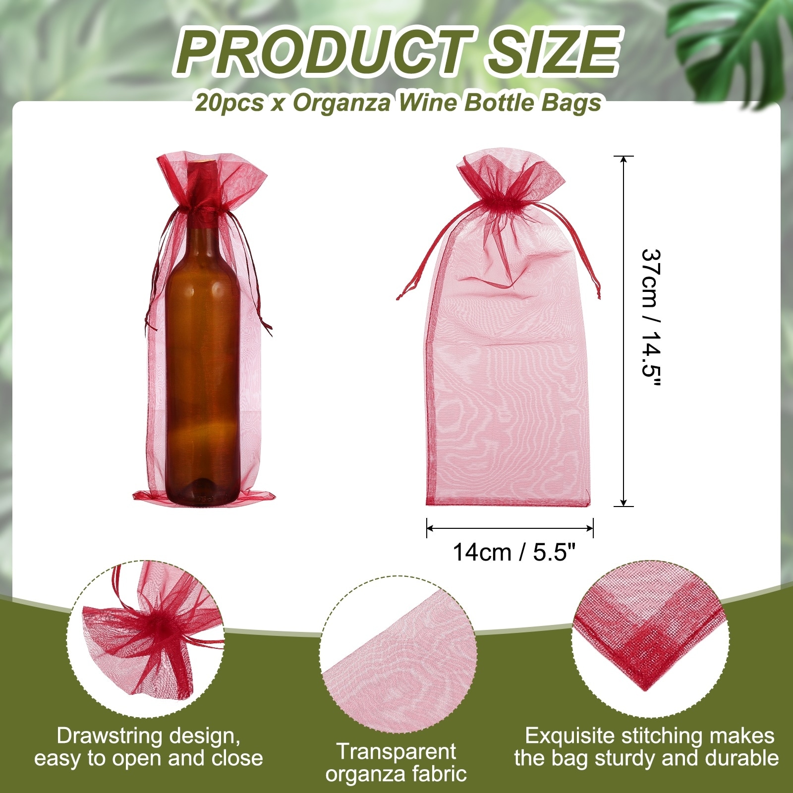 Organza Wine Bags, Drawstring Organza Bottle Gift Bags Sheer Wine Wrapping Bag for Bottle Wrap Birthday - 14.5 x 5.5"