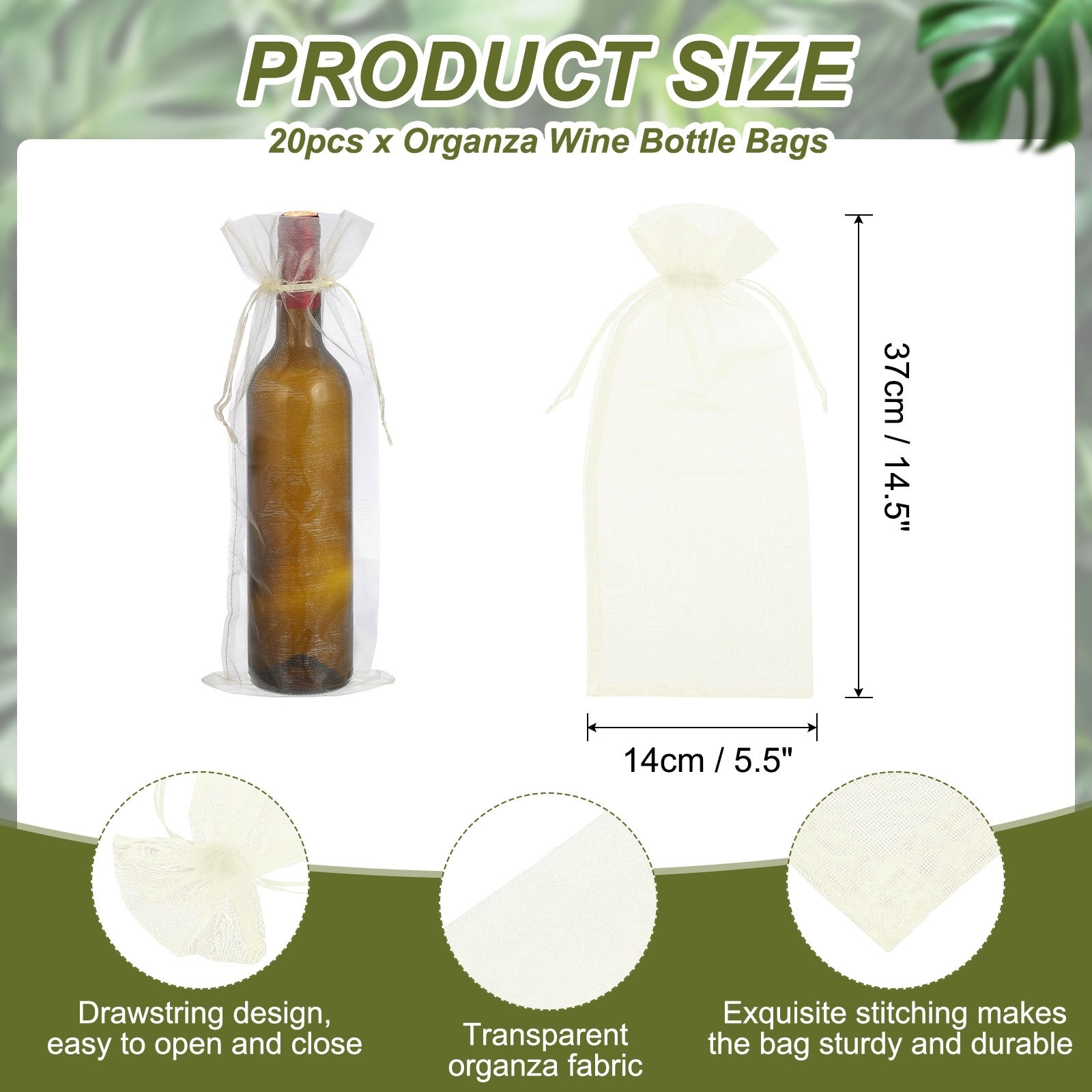 Organza Wine Bags, Drawstring Organza Bottle Gift Bags Sheer Wine Wrapping Bag for Bottle Wrap Birthday - 14.5 x 5.5"