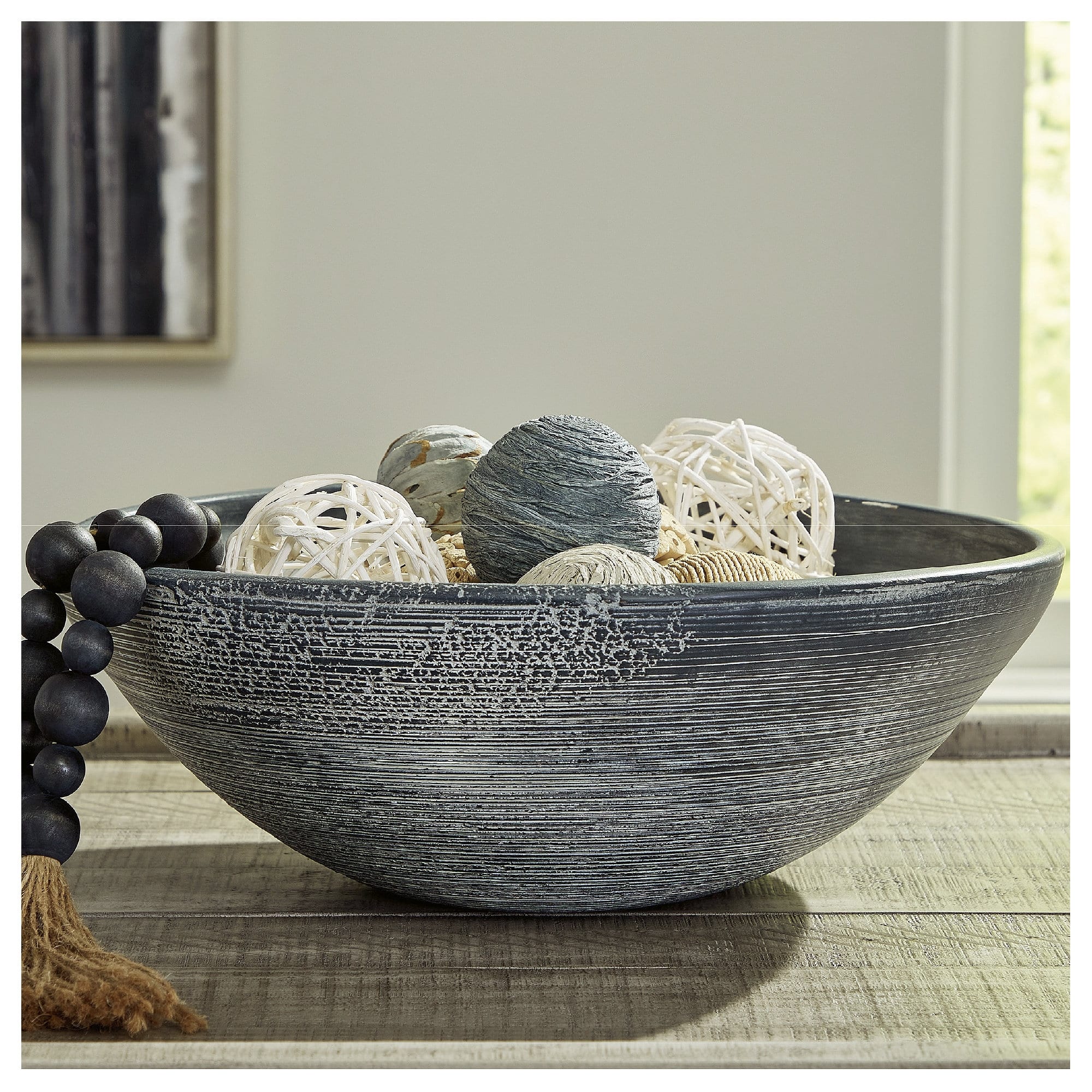 Signature Design by Ashley Meadie Distressed Blue Bowl - 16"W x 16"D x 6"H