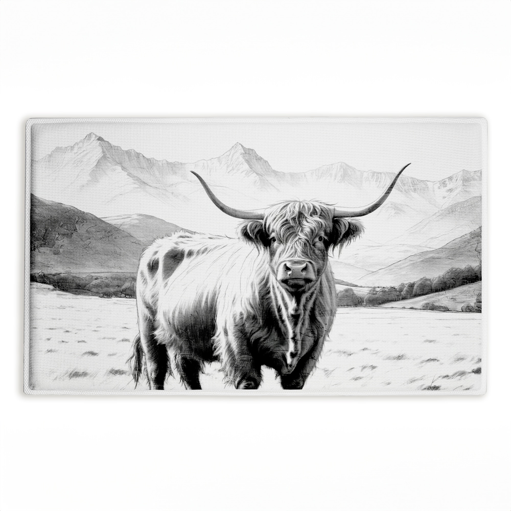 Stupell Highland Sketch in Mountains Printed Plush Bath Mat and Bath Rug, design by Kim Allen, 18"x30"
