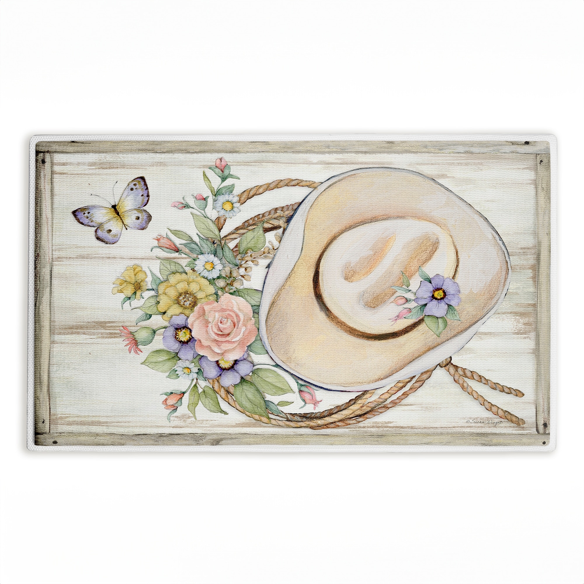 Stupell Shabby Chic Floral Cowboy Hat Printed Plush Bath Mat and Bath Rug, design by Susan Winget, 18"x30"