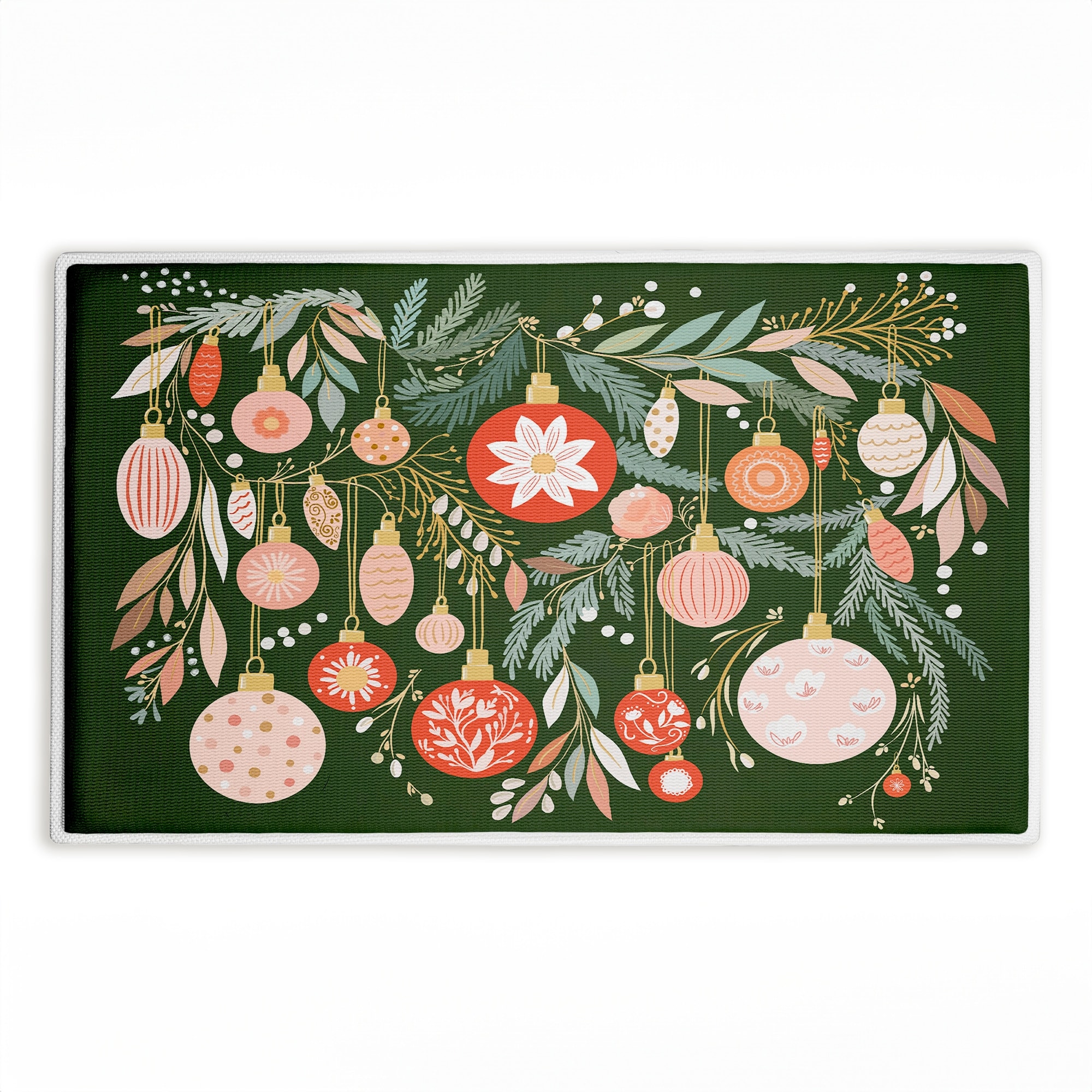 Stupell Holiday Florals & Ornament Shapes Printed Plush Bath Mat and Bath Rug, design by Leah Straatsma, 18"x30"
