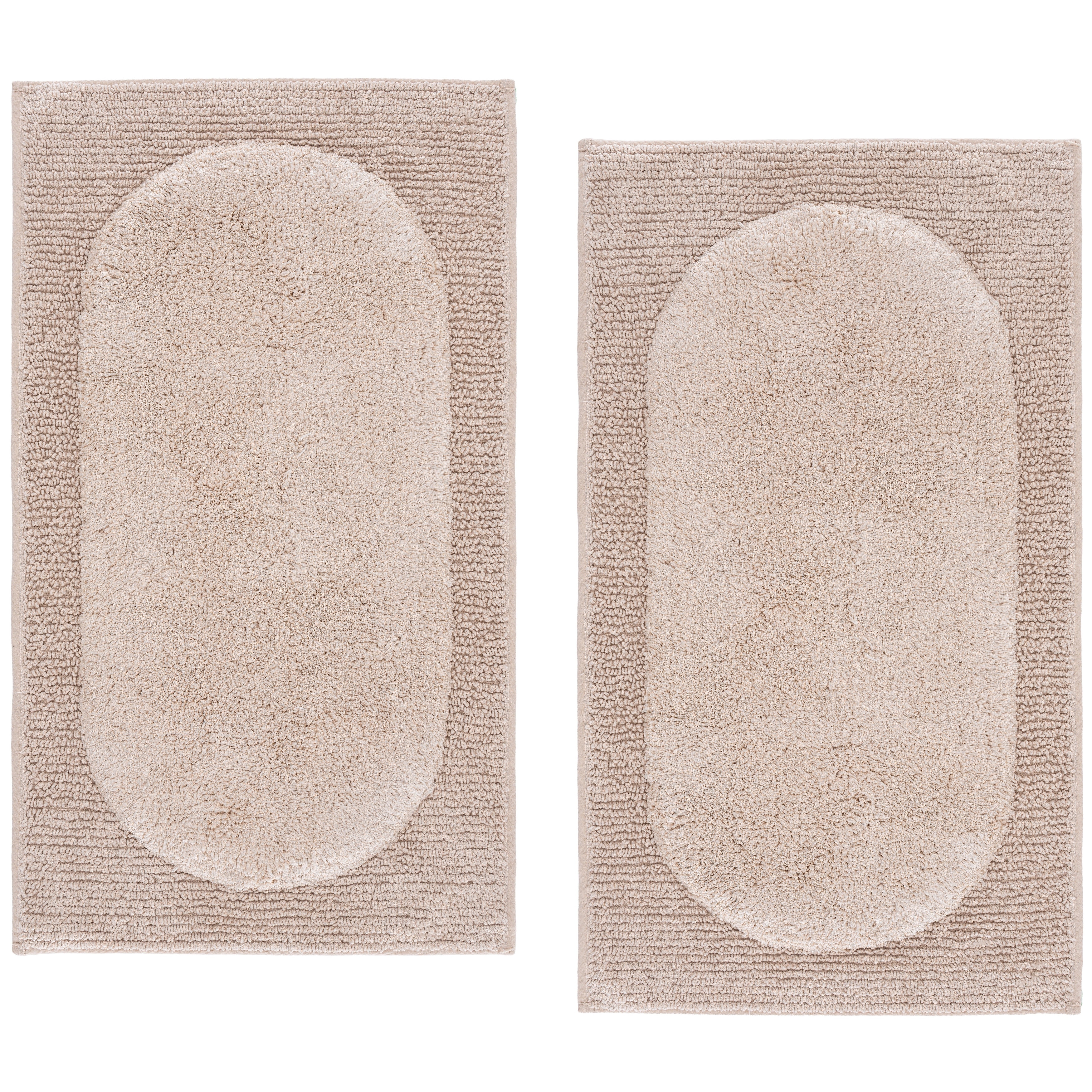 Blue Nile Mills 100% Cotton Solid Modern Geometric Border Absorbent Heavy Washable Bath Mats, Set of 2
