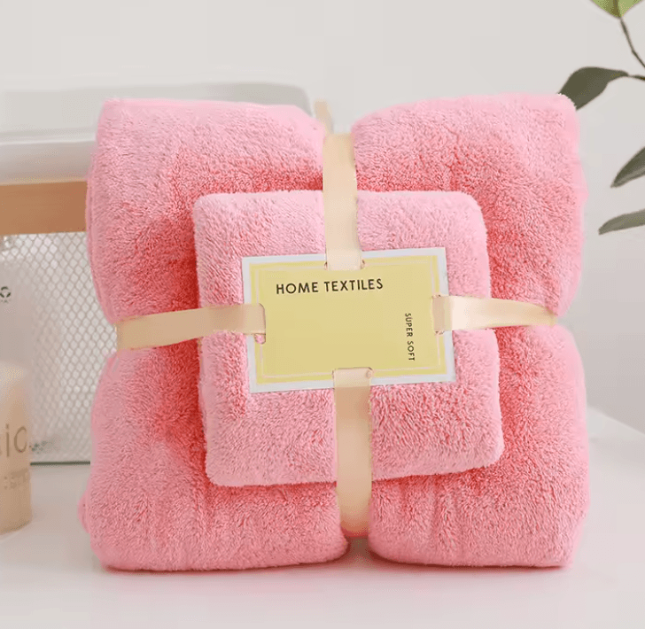 QuickDry Coral Velvet Bath Towel Set 2 Pack pink