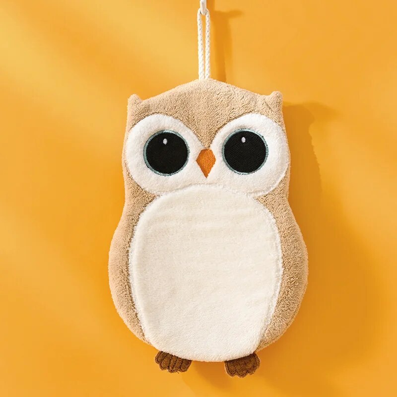 Soft Coral Velvet Towel, Hanging Type Quick Drying, Absorbent Cartoon Hand Towel For Bathroom & Kitchen khaki