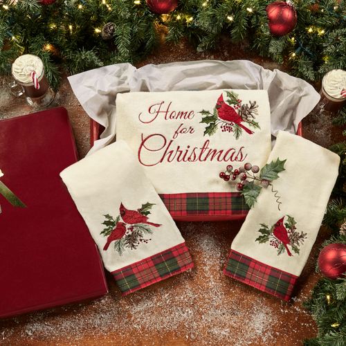 Home for Christmas Bath Towel Set Light Cream Bath Hand Fingertip, Bath Hand Fingertip, Light Cream