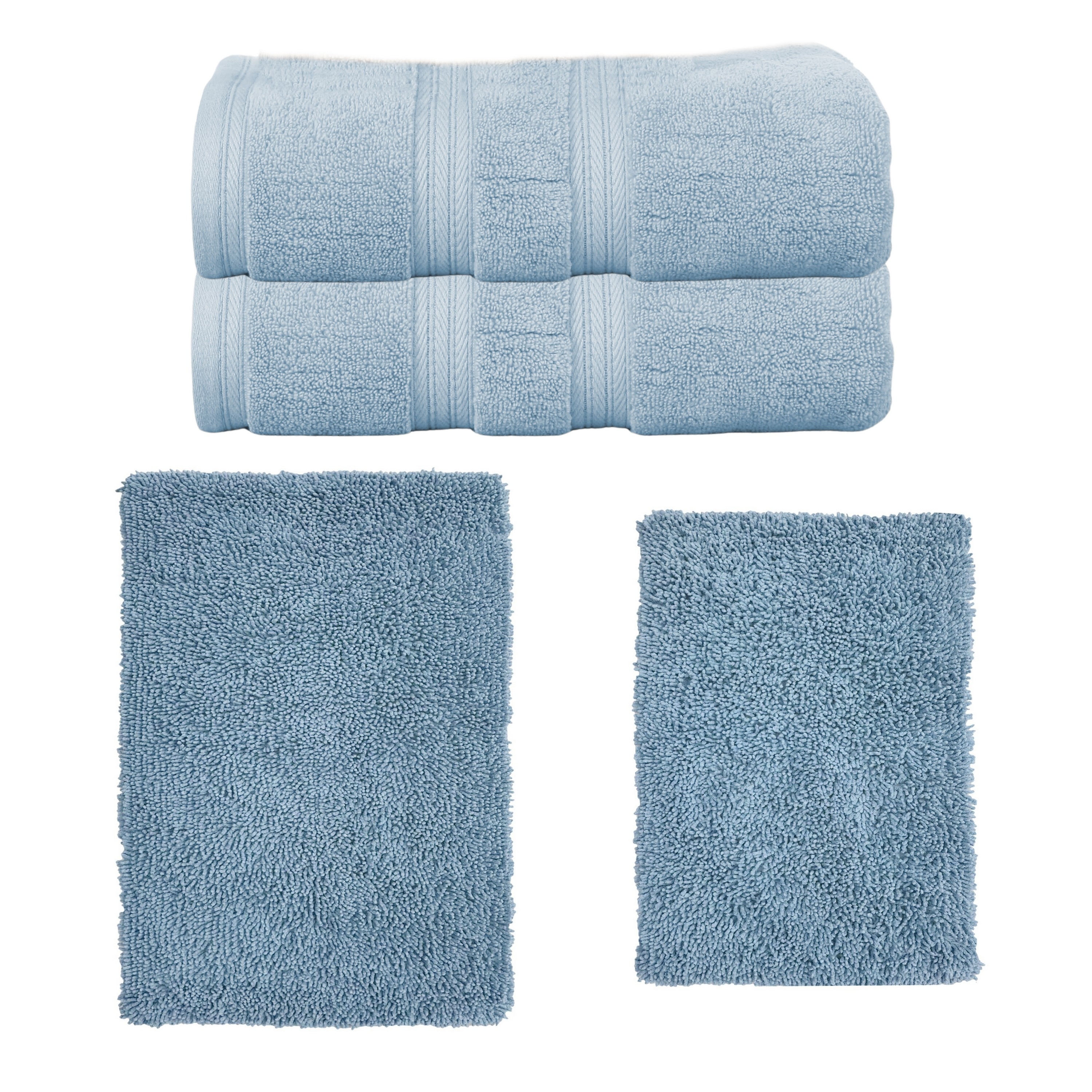 Home Weavers Fantasia Collection 100% Soft Cotton Super Absorbent 2 Pc Bath Towel Set & 2 Pc Bath Rug Set,Machine Wash(Set of 4)